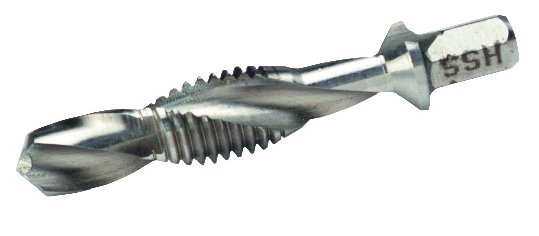 Kombi-Gewindebohrer, Bohren - Gewindeschneiden - Entgraten in einem Arbeitsgang, aus HSS, geeignet für Stahl und NE - Metalle, für Materialstärke bis 1 x Durchmesser, M6