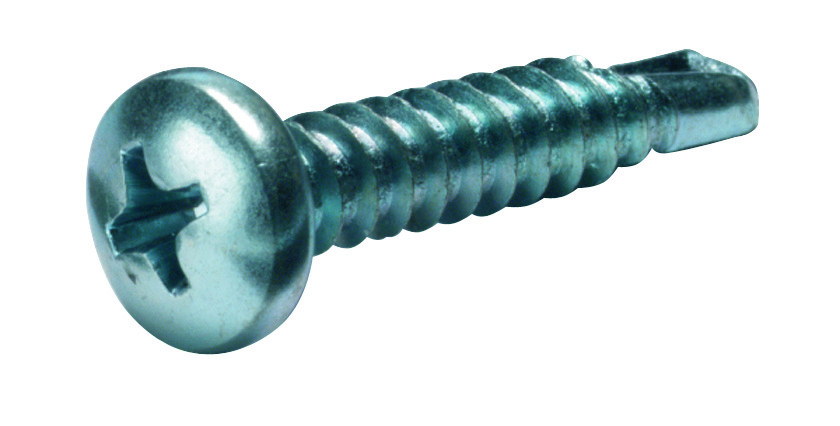 Blechschraube (Bohrschraube) nach DIN 7504 m (vormals N), selbstbohrend, Stahl gehärtet, verzinkt,Halbrund-/Linsenkopf mit Phillips-Kreuzschlitz, Blechschraubengewinde nach DIN 7970. Ausführung: Ø-4,8 mm; Länge: 25 mm; für Kreuzschlitz-Phillips Größe: 2; VE: 100.