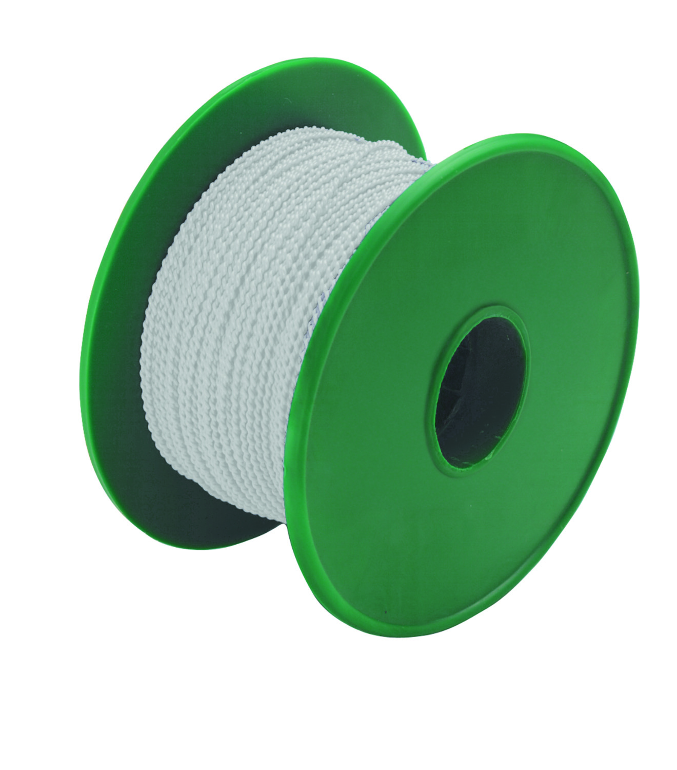 Kunststoffummantelter Plombendraht, Spule 100 m, weiß, mit einem Ø von 0,5x0,6 mm, Eisendraht