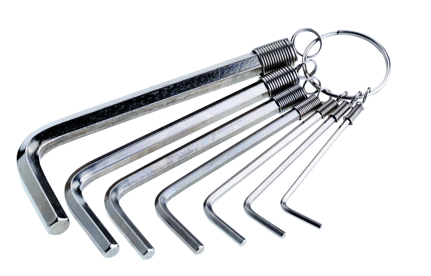 Sechskant-Stiftschlüssel-Satz, 8teilig, am Schlüsselring, DIN 911, aus Chrom-Vanadium-Stahl SW2- SW2,5- SW3- SW4- SW5- SW6- SW8- SW10 am Schlüsselring befestigt