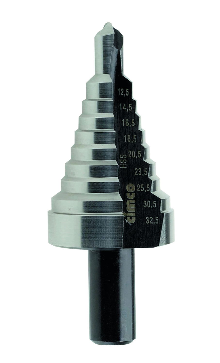 HSS-Stufenbohrer für Kabelverschraubungen. Sonderausführung für Kern- und Durchgangsloch-Bohrungen für metrische Kabelverschraubungen, mit 2 Spannuten, Aufnahmeschaft-Ø 12 mm. Ausführung: Bohrbereich M12-32; VE: 1.