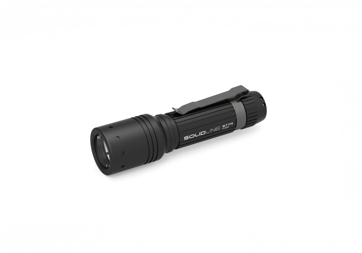 Die Solidline ST7R ist eine wiederaufladbare Allround-Taschenlampe mit bester Qualität und viel Leuchtpower für preisbewusste Nutzer. Dafür sorgt der leistungsstarke 18650er Lithium-Ionen-Akku (im Lieferumfang enthalten), der direkt per Micro-USB-Port aufgeladen werden kann. Das Fokussiersystem sorgt mit einem Dreh für gleichmäßiges Nahlicht oder fokussiertes Fernlicht. Die Allround-Taschenlampe ist aufgrund ihres Metallgehäuses extrem robust und widerstandsfähig, und überzeugt durch ihre guten technischen Werte. Länge: 13,1 cm. Lichtleistung (Boost-Modus): 1000 lm für bis zu 300 m Leuchtweite. Lieferumfang: Leuchte, Akku, USB-Ladekabel, Metallclip. Gewicht der Leuchte mit Akku: 160 g. Schutzklasse IP54.
