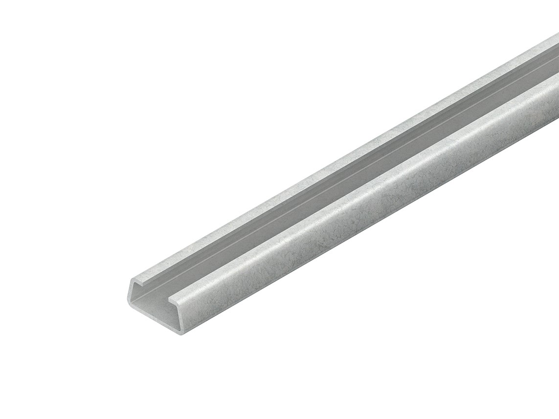 Ankerschiene Modell 2920, C-Profil mit schräg zulaufenden Seiten, ungelocht. Passende Bügelschellen (BA... und BAK...). Abmessungen (ca. Maße) Höhe H x Materialstärke t : 12 x 1,5 mm Breite B auf Breite B1 : 25 auf 21 mm Schlitzweite : 11,2 mm Lieferlänge L : 2000 mm Werkstoff : Stahl, blank