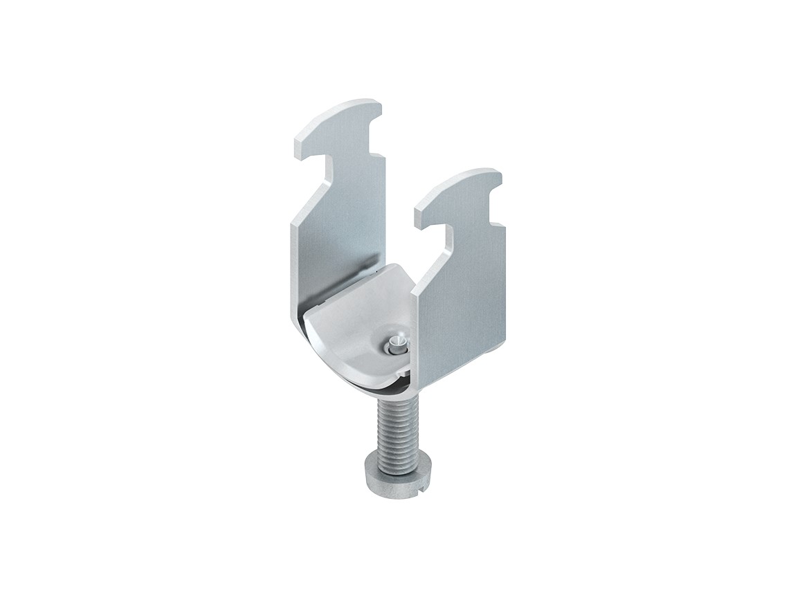 Hammerfuß-Bügelschelle, mit Druckwanne und Zapfenschraube M 8 nach DIN EN ISO 1207 mit Mehrfachantrieb. Gegenwanne GW ... bitte gesondert bestellen. Verwendung für : C-Profilschienen mit 16 - 17 mm Schlitzweite Abmessungen (ca. Maße) Belegung : 1 Kabel für Kabel-Ø : 26 - 30 mm Werkstoff Hammerfußbügel : Aluminium Werkstoff Druckwanne : Aluminium
