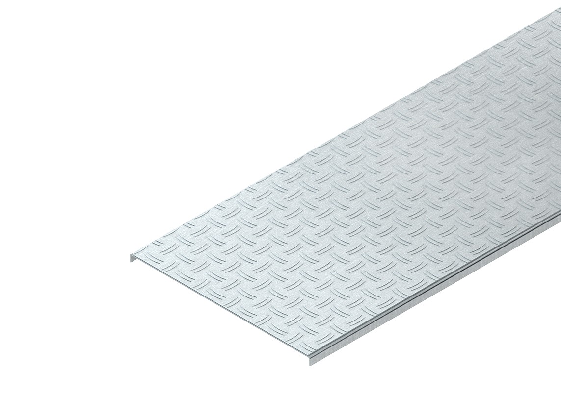 Deckel, rutschsicher R9 gemäß DIN 51130, schwere Ausführung, mit vollflächig aufgenieteten leichtem Aluminiumriffelblech, ohne Drehriegelverschlüsse, für begehbare Kabelrinnen. Andere Antirutschbeläge auf Anfrage lieferbar. Zur Befestigung des Deckels müssen bei Bedarf Deckelhaltefedern RDHFS 9 separat bestellt werden. Zur Unterstützung des begehbaren Deckels bitte die Mindestanzahl an Trennstegen beachten (siehe Trennstege RTSKQ... AL, RTSQF... und RW...-...)! Verwendung für : begehbare Kabelrinnen Abmessungen (ca. Maße) B (innen) : 105 mm Materialstärke t gesamt : 4 mm Die Materialstärke setzt sich aus 2 mm Stahlblech, 1,5 mm Aluminiumblechauflage und 0,5 mm Riffelhöhe zusammen. Lieferlänge L : 3000 mm Werkstoff : Stahl, bandverzinkt DIN EN 10346 Aluminium, blank