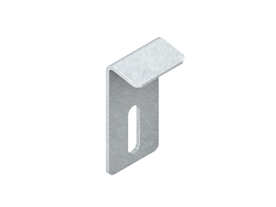 Deckelhaltelasche, zur Befestigung von Gitterrinnendeckel auf U-förmige Gitterrinnen mit mindestens zwei seitlichen Längsdrähten. Die Deckelhaltelasche wurde zur zusätzlichen Sicherung der Deckel für die vertikale Verlegart konzipiert, zusätzlich dient sie als Windsicherung im Außenbereich für die vertikale und horizontale Verlgegung. Zur Befestigung an den vertikalen Querdrähten der Gitterrinnen Hakenschrauben GRSM 6 bitte gesondert bestellen. Verwendung für : Gitterrinnendeckel GRD... GRD.../7,5° MTCC.../7,5° Abmessungen (ca. Maße) H x B : 30 x 59 mm Befestigungslochung : 7 x 25 mm Werkstoff : Stahl, tauchfeuerverzinkt nach DIN EN ISO 1461