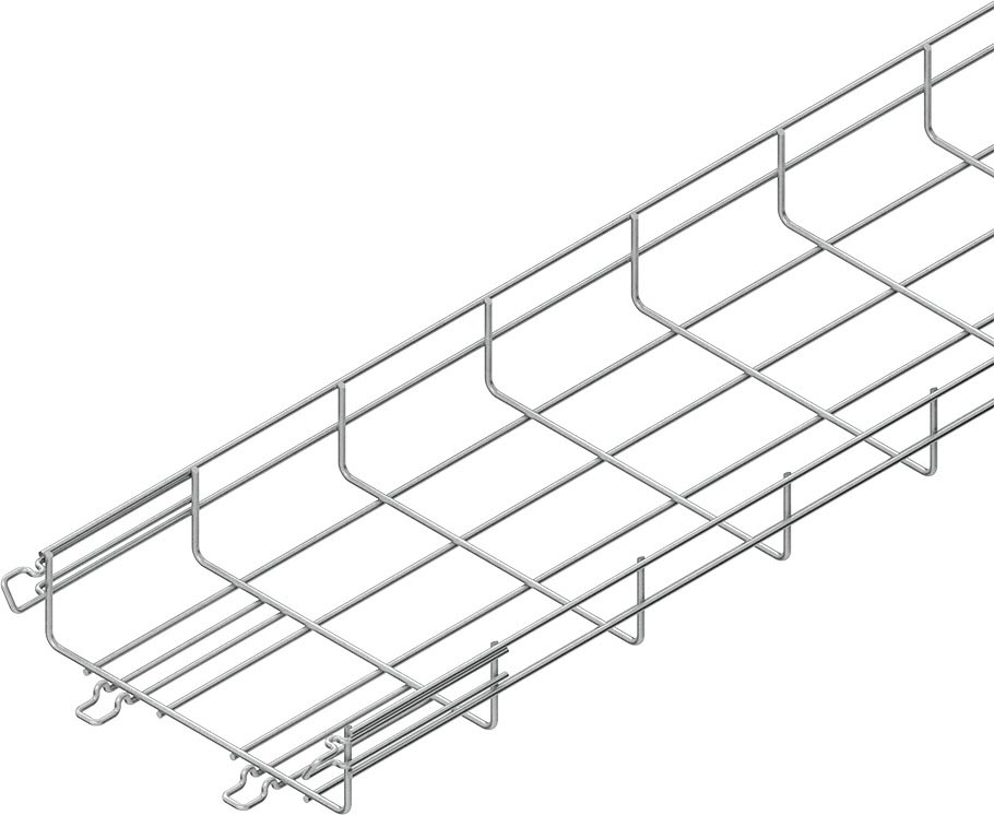 Gitterrinne nach DIN EN 61537, U-förmig, aus Stahldrähten, punktgeschweißt, zur Schnellbefestigung mit angeschweißten Stoßstellenverbindern in den Seiten und im Boden. VDE zertifiziert! Zur Verwendung im Funktionserhalt bitte Zusatzvorschriften beachten! Abmessungen (ca. Maße) Nennmaße H x B (innen) : 54 x 300 mm Längsdraht-Ø : 4,82 mm Bodenlängsdrahtabstand : 50 mm Querdraht-Ø : 4,82 mm Querdrahtabstand : 100 mm Lieferlänge L : 3000 mm Nutzbarer Querschnitt : 15262 mm² Werkstoff : Stahl, galvanisch verzinkt nach DIN EN ISO 19598, blaupassiviert