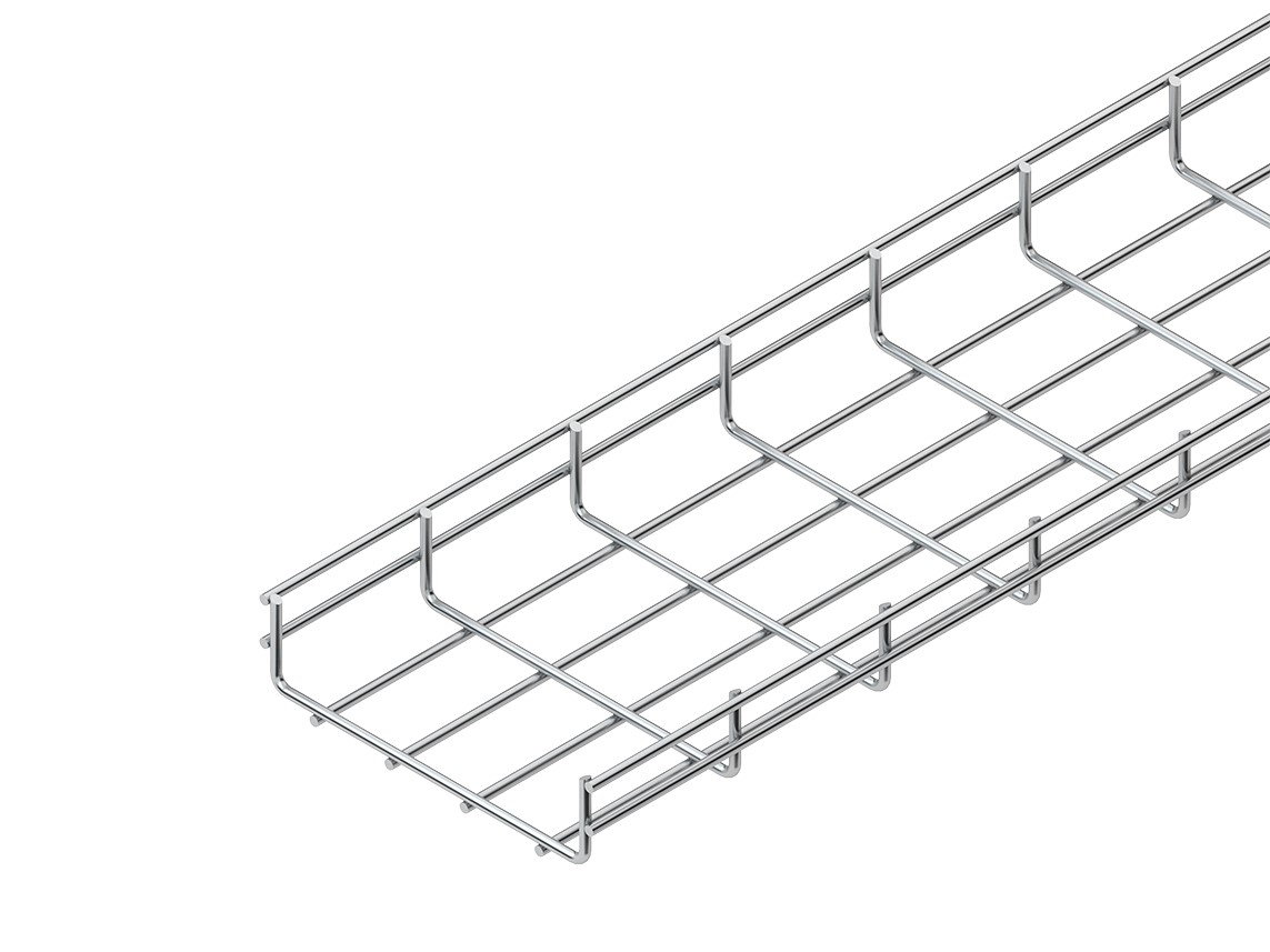 Gitterrinne nach DIN EN 61537, U-förmig, aus Stahldrähten, punktgeschweißt, ohne Verbinder. Verbinder MTSCO 6 bitte gesondert bestellen. Für eine optimale Belastung der Gitterrinne beachten Sie hierzu bitte die Angaben zu Anzahl sowie die genaue Positionierung der Verbinder. Abmessungen (ca. Maße) NennMaße H x B (innen) : 54 x 150 mm Längsdraht-Ø : 6,0 mm Bodenlängsdrahtabstand : 50 mm Querdraht-Ø : 6,0 mm Querdrahtabstand : 100 mm Lieferlänge L : 3000 mm Nutzbarer Querschnitt : 7665 mm² Werkstoff : Stahl, galvanisch verzinkt nach DIN EN ISO 19598, blaupassiviert