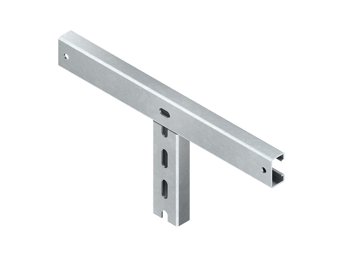 Klemmadapter, zur 90° Auslegeranordnung an T-Trägern mit einer Flanschbreite = 300 mm, einschließlich Befestigungszubehör für die Montage des Auslegers am Klemmadapter, erforderliches Klemmzubehör an T-Trägern, wie 2 x GM 5030 M10 F, 2 x SK 10X... (= 8.8) und 2 x HSK..., bitte gesondert bestellen. Generell müssen zuerst die Ausleger an den Adapter befestigt werden! Die Klemmbefestigung sollte symmetrisch und die Schrauben so nah wie möglich am Flansch angebracht werden. Es gelten die Tragfähigkeitsangaben der zum Einsatz kommenden Ausleger. Bei den Klemmadaptern gelten diese Tragfähigkeitsangaben nur, wenn im Klemmbereich die Oberflächen der T-Stützen und der Profilklemmen aus Stahl oder verzinktem Stahl sind. Ist der Bauuntergrund bei einer Klemmverbindung mit einem Farbanstrich versehen, muss dieser entfernt werden, da sonst die Tragfähigkeit nicht gegeben bzw. gewährleistet ist. Gefahr des Abrutschens! Sind Stahlstützen mit einem Brandschutzanstrich versehen, darf dieser nicht ohne Rücksprache und schriftlicher Freigabe des Auftraggebers bzw. der Bauleitung entfernt werden. In jedem Fall ist die Einleitung der Lasten ins Bauwerk mit der Bauplanung bzw. Bauleitung abzustimmen. für Hängestiel- und Wandausleger : KTCL..., KTC... für Hängestiel- und Wandausleger : KTAC..., KTAL..., KTAM..., KTA... Abmessungen (ca. Maße) H x B : 198 x 400 mm Tragfähigkeit F bei L/2 des Auslegers : = 1,5 kN Werkstoff : Stahl, tauchfeuerverzinkt nach DIN EN ISO 1461 Flanschstärke des Trägers in mm : [Kundenangabe erforderlich]