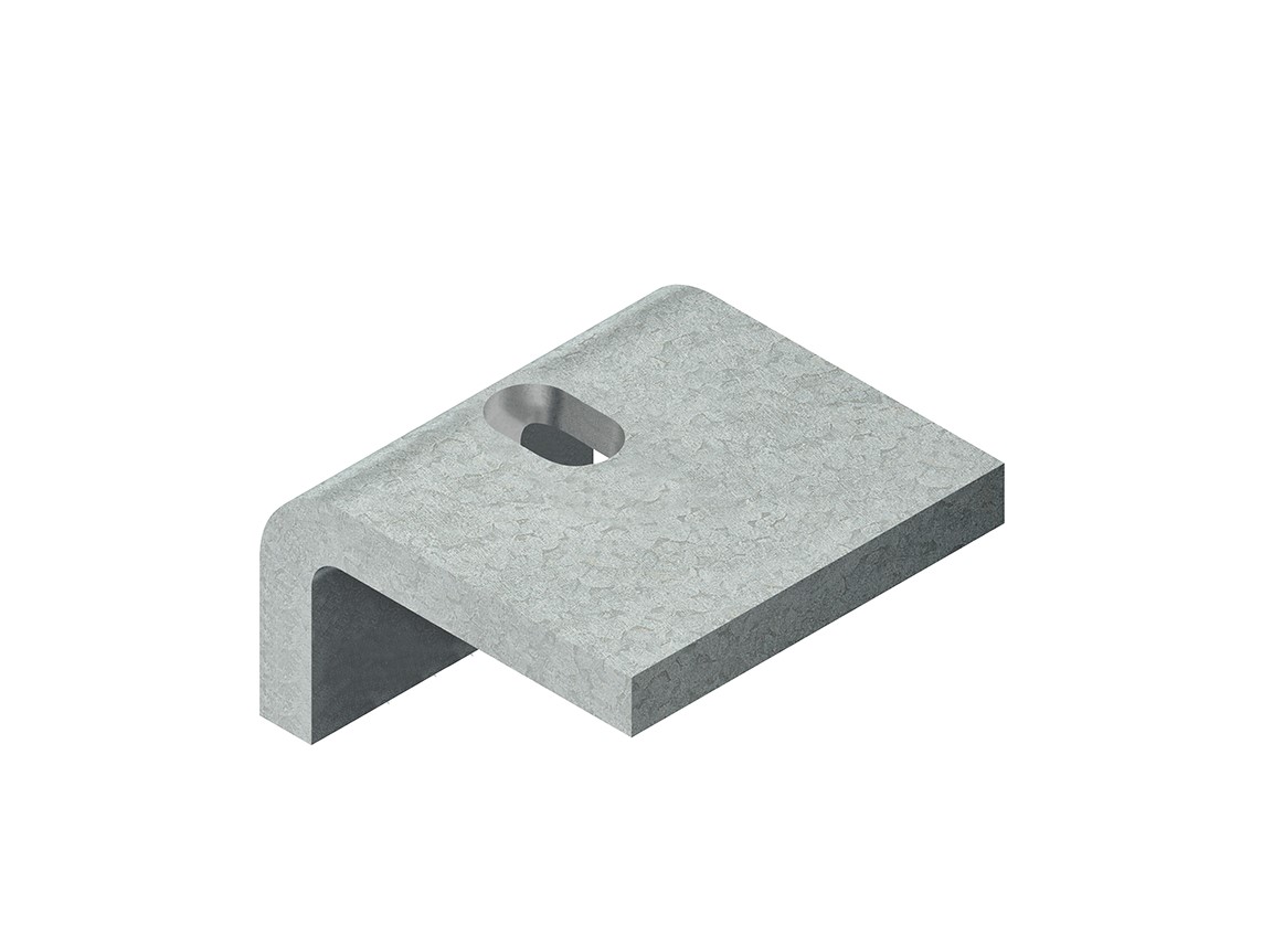Profilklemme, zur Klemmverbindung an Stahlträgerflansche. Abmessungen (ca. Maße) Klemmhöhe H : 20 mm Breite B : 50 mm Länge L : 50 mm Materialstärke t : 7 mm Befestigungslochung : 11 x 15 mm für Trägerflanschstärke : 15 - 19 mm Werkstoff : Stahl, tauchfeuerverzinkt nach DIN EN ISO 1461