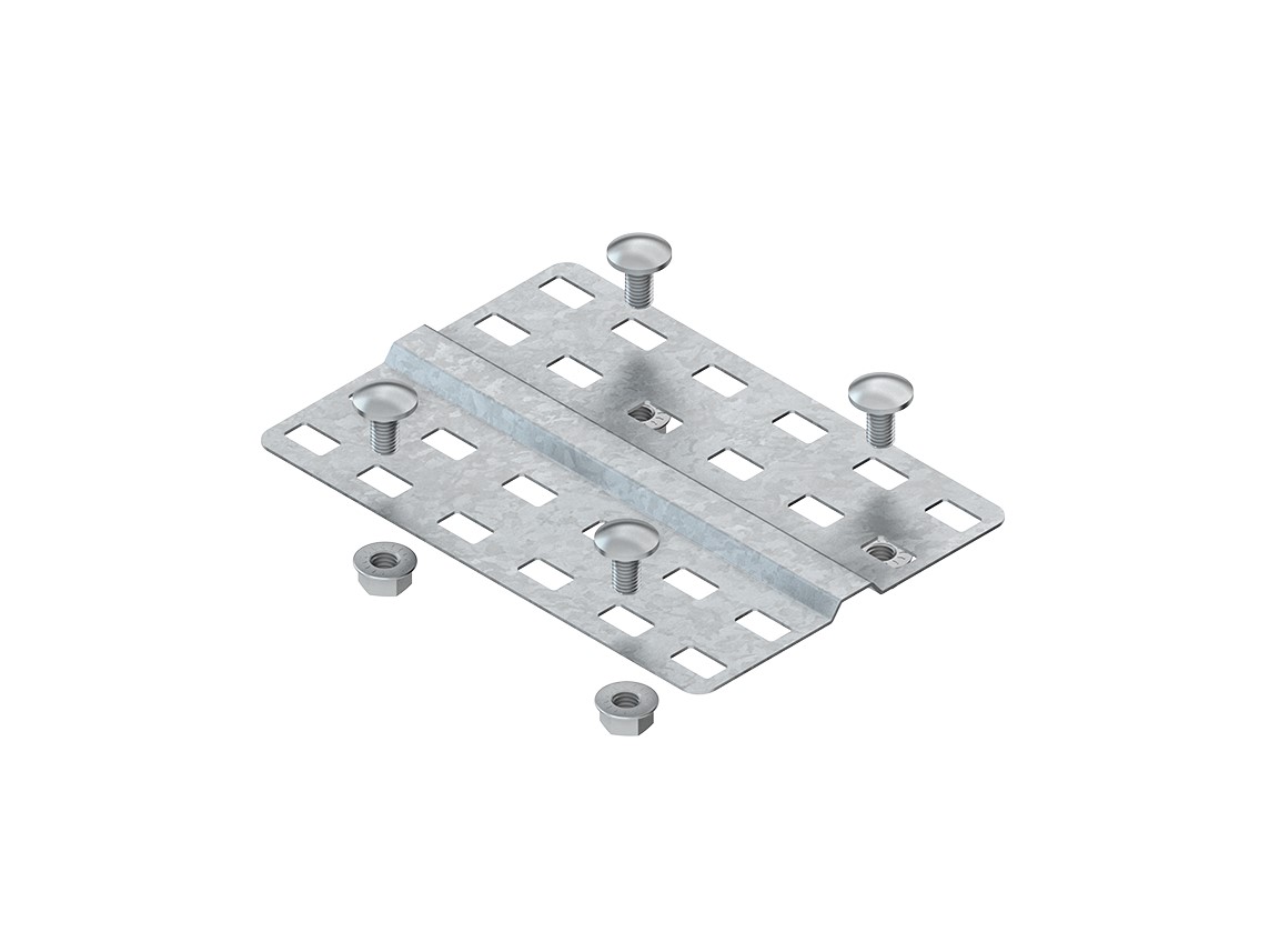 Stoßstellenleiste, für Kabelrinnen mit Bodensicken, mit durchgehender Befestigungsperforation, erforderlich zur Bodenstabilisierung der Kabelrinnen an Stoßstellen, einschließlich anteilmäßigem Befestigungszubehör. Zur Verwendung im Funktionserhalt bzw. für Unterdecken mit brandschutztechnischen Anforderungen (Muster-Leitungsanlagen-Richtlinie MLAR 2/2015) bitte Zusatzvorschriften beachten! für Kabelrinnen : RLC 60 ... RLUC 60... RLCI 60... RLCPV 85... für Funktionserhalt : RLC 60... OV in Verbindung mit Verbinder RVC 60/2 Bedarf : 1 Stück je Stoßstelle Abmessungen (ca. Maße) B : 139 mm Werkstoff : Stahl, bandverzinkt nach DIN EN 10346
