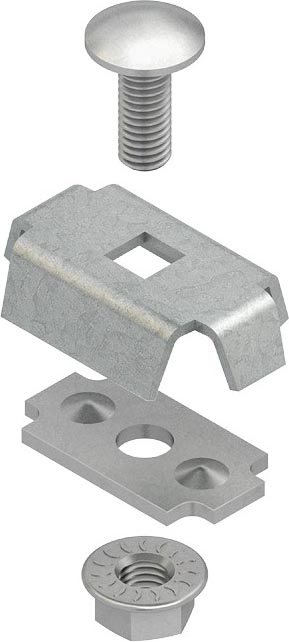 Universalverbinder, zweiteilig, zur Erstellung von durchlaufenden Gitterrinnen und zur variablen Herstellung von Formstücken, einschließlich anteilmäßigem tauchfeuerverzinkten Befestigungszubehör. Verwendbar für : Gitterrinnen mit einem Draht-Ø 3,9 - 5 mm Werkstoff : Stahl, bandverzinkt nach DIN EN 10346