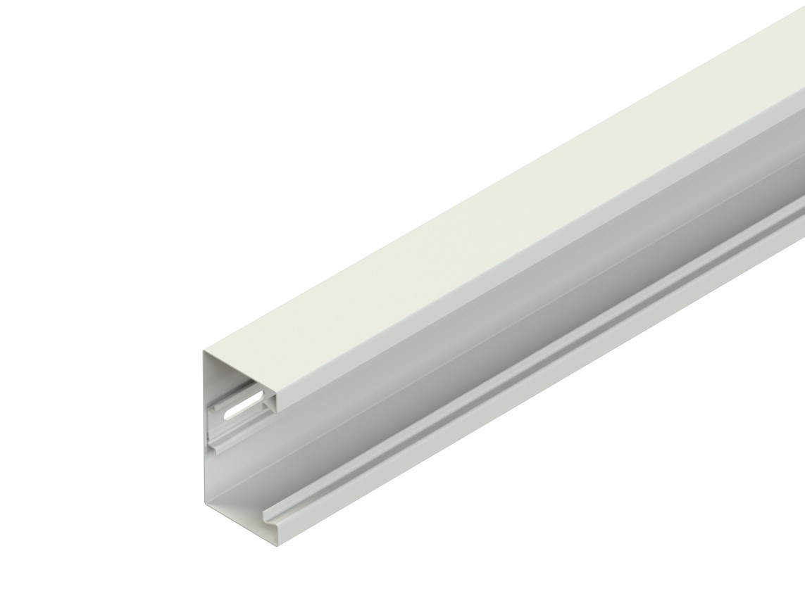 Gerätekanalunterteil, einzügig symmetrisch, mit Schlaufen und rückwärtiger Befestigungslochung zur flexiblen Montage auf Wand oder Wandkonsole, durchgehende Schlaufen zur Aufnahme von Trennprofilen im Rückenteil, Sichtflächen in RAL Farbton gemäß Herstellerkatalog elektrostatisch pulverbeschichtet, Gerätemontage im Leitungszug mit einrastbarer Gerätedose für Einbauprogramme mit 80 mm Abdeckrahmen und 60 mm Befestigungsspur, Geräteeinbau ohne Lochblenden, einschließlich 3 Kabelhalteklammern GKF 78 je 2 m Lieferlänge, für den Potentialausgleich zwei Stoßstellenverbinder GSVA... je Stoßstelle, bitte gesondert bestellen. VDE zertifiziert! Bei der Montage ist darauf zu achten, dass die Schlaufenöffnungen nach oben zeigen. Um einen festen Sitz des Deckels zu erzielen, müssen die Kabelhalteklammern GKF... im Abstand von 0,6 m - 0,7 m im Kanalunterteil eingesetzt werden. Abmessungen (ca. Maße) Höhe H x Tiefe T : 110 x 70 mm Deckelöffnung : 78 mm einreihige horizontale Rückenlochung : 7 x 33 mm mittiger Lochabstand : 62,5 mm Schlaufenabstand RasterMaße : 250 mm Lieferlänge L : 2000 mm Nutzbarer Querschnitt : 6452 mm² Farbton : verkehrsweiß RAL : 9016 (ähnlich) Werkstoff : Stahl, bandverzinkt nach DIN EN 10346- Hersteller-Artikelnummer (MPN)