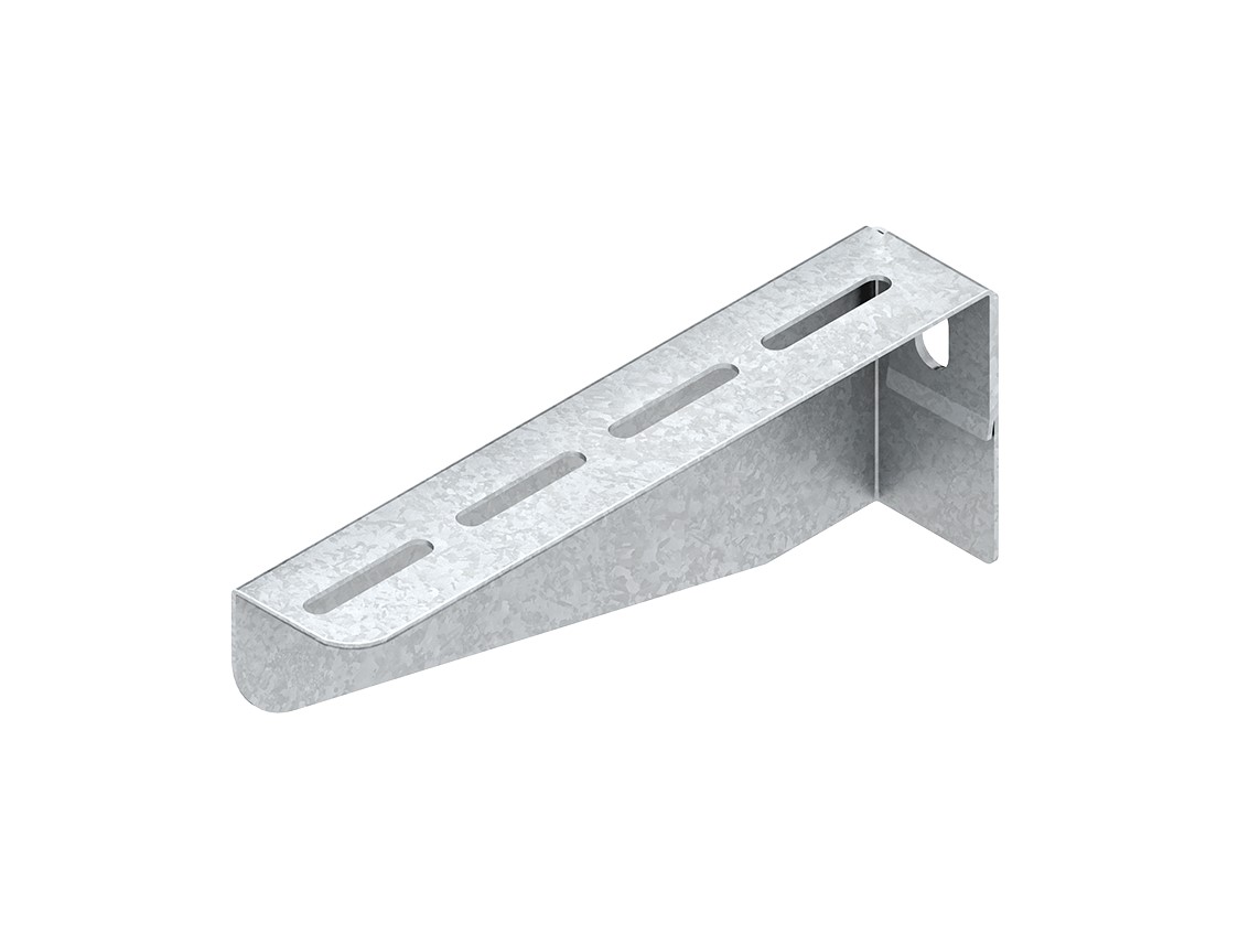 Hängestiel- und Wandausleger, leicht, zur Wand- und Hängestielmontage, einschließlich anteilmäßigen Befestigungszubehör. Die Tragfähigkeitsangaben gelten nur bei ausreichender Verankerung mit dem tragenden Untergrund bzw. bei vorschriftsmäßigen Montagen an Hängestielen. Abmessungen (ca. Maße) Auflagehöhe H : 85 mm Auflagelänge L : 310 mm Tragfähigkeit F bei L/2 : 0,6 kN im System geprüft Werkstoff Ausleger : Stahl, bandverzinkt nach DIN EN 10346