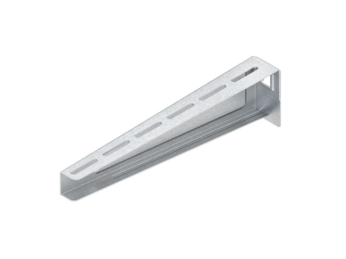 Hängestiel- und Wandausleger, mittelschwer, zur Wand- und Hängestielmontage, einschließlich anteilmäßigen Befestigungszubehör in Edelstahl, Werkstoff Nr. 1.4301, AISI 304. Die Tragfähigkeitsangaben gelten nur bei ausreichender Verankerung mit dem tragenden Untergrund bzw. bei vorschriftsmäßigen Montagen an Hängestielen. VDE zertifiziert! Abmessungen (ca. Maße) Auflagehöhe H : 85 mm Auflagelänge L : 310 mm Tragfähigkeit F bei L/2 : 1,2 kN im System geprüft Werkstoff Ausleger : Edelstahl, Werkstoff Nr. 1.4301, AISI 304