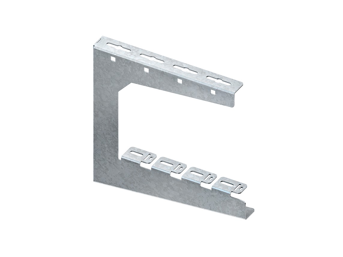 Zentralabhängung, C-förmig, Bügel zur Deckenmontage mittels Gewindestab M 10/... sowie zur Wandbefestigung. Die Tragfähigkeitsangaben gelten nur bei ausreichender Verankerung mit dem tragenden Untergrund. Verwendbar für : Gitterrinnen mit einem Draht-Ø 3,9 - 6 mm und einem mittigen Längsdrahtabstand von 50 mm sowie für Kabelrinnen Abmessungen (ca. Maße) Höhe H (Außenmaß) : 281 mm Breite B (Außenmaß) : 30 mm Länge L (Außenmaß) : 465 mm Materialstärke t : 2,5 mm obere Auflagelänge L1 : 350 mm Befestigungslanglochung der oberen Auflagefläche : 7 x 40 mm und Ø 11 mm mittiger Abstand der Befestigungslanglochung : 56 mm vertikale quadratische Lochung : ? 8 mm mittiger Abstand der quadratischen Lochung : 55,5 mm untere Auflagelänge L2 : 410 mm Befestigungslanglochung der unteren Auflagefläche : 7 x 20 mm Aufnahme von Gitterrinnen mit einem Längsdrahtabstand : 50 mm und einem Draht-Ø 3,9 - 6 mm Deckenabhängung mittels Gewindestab M 10/... Tragfähigkeit F1 bei L2/2 : 0,5 kN Wandbefestigung mittels Durchsteckanker DAZ 10X... Tragfähigkeit F2 bei L2/2 : 1,5 kN Wandbefestigung mittels Durchsteckanker DAZ 10X... Tragfähigkeit F3 bei L1/2 : 1,5 kN Werkstoff : Stahl, bandverzinkt nach DIN EN 10346