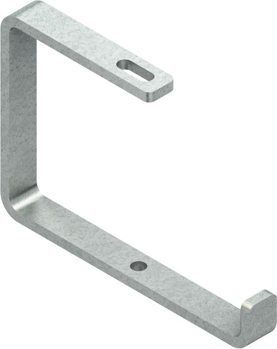 Zentralabhängung, C-Bügel zur Deckenmontage (zentrale Abhängung) mittels Gewindestange M 10. Die Tragfähigkeitsangaben gelten nur bei ausreichender Verankerung mit dem tragenden Untergrund. Abmessungen (ca. Maße) obere Bügellänge L1 (Außenmaß) : 135 mm Befestigungslochung im oberen Bügel : 11 x 30 mm Höhe (Außenmaß) : 160 mm Auflagelänge L (Innenmaße) : 210 mm Breite : 25 mm Materialstärke t : 8 mm Tragfähigkeit F bei L/2 : 0,6 kN Werkstoff : Stahl, tauchfeuerverzinkt nach DIN EN ISO 1461