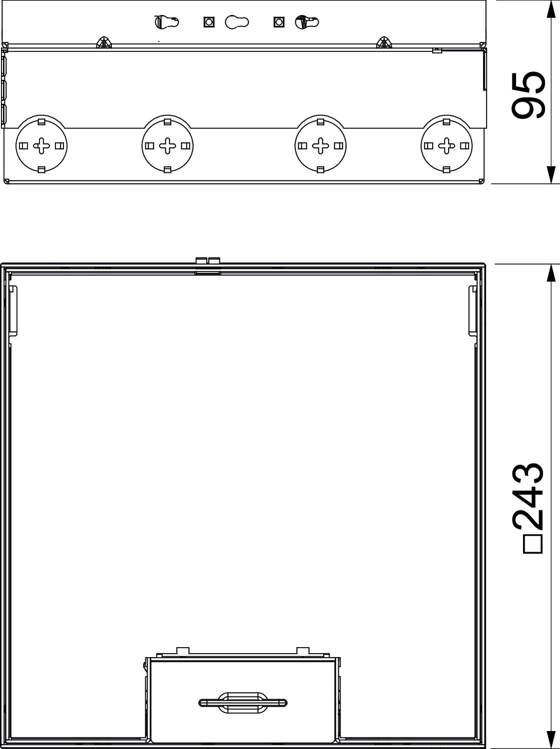 Quadratischer Bodentank für den Einsatz in trocken gepflegten Hohlböden und Estrichböden im Innenbereich. Einbaugehäuse mit vorgeprägten Einführungsöffnungen für Rohre (M25). Leergehäuse für bis zu 3 Universalträger UT4 für bis zu 12 Modul 45 ® -Einbaugeräte. Oberteil durch 4 Nivellierstützen auf Oberkante Bodenbelag einstellbar. Die Mindesteinbautiefe beträgt 95 mm, der Nivellierbereich + 30 mm.