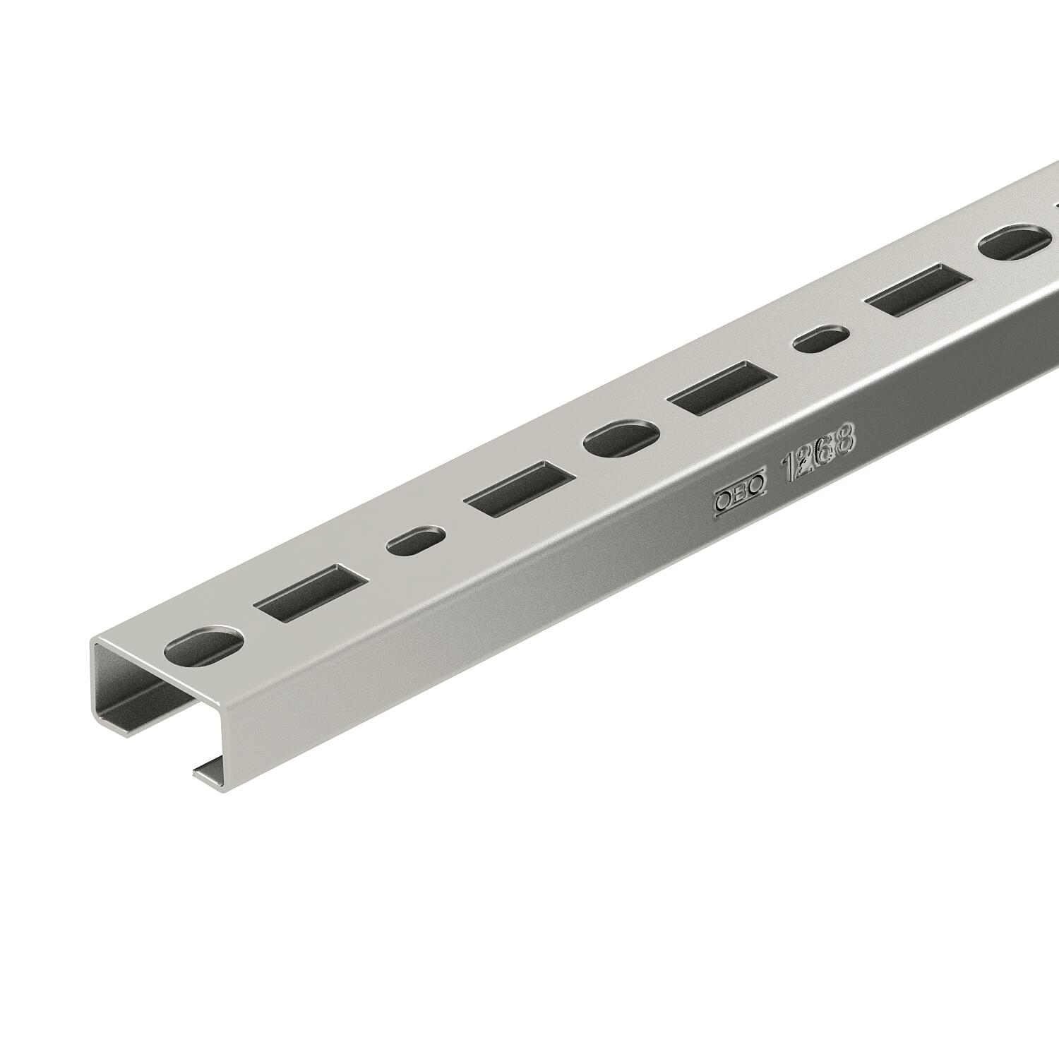 Mittlere C-Profilschiene zur Kabelverlegung, in Verbindung mit Bügelschellen mit Hammerkopf-Fuß. Auch verwendbar als Abhängekonstruktion für Kabeltragsysteme.
