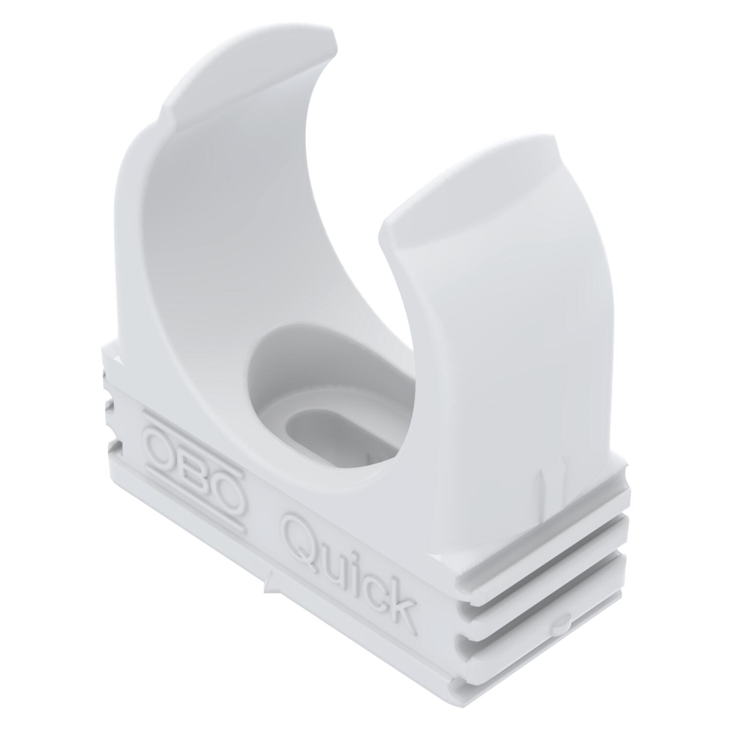 Flammwidrige Aufputzschelle zur Aufnahme von metrischen Stahlpanzerrohren, leichten und schweren Isolierrohren sowie Elektroinstallationsrohr Quick-Pipe. Universelle Befestigungsmöglichkeiten an Wand und Decke im Innen- und geschützten Außenbereich. Mit Langloch zum seitlichen Ausrichten bei Montage mit Holzschraube oder Schlagdübel. Werkzeuglose Rohrmontage. Aneinander reihbar auch mit OBO Multi-Quick- oder proQuick-Schelle. Größe M16 - M32 kann auf Gewinde M6 geschraubt werden. Befestigungsabstand 50 - 60 cm, max. Auszugswerte F bei 20° C Raumtemperatur siehe Tabelle.