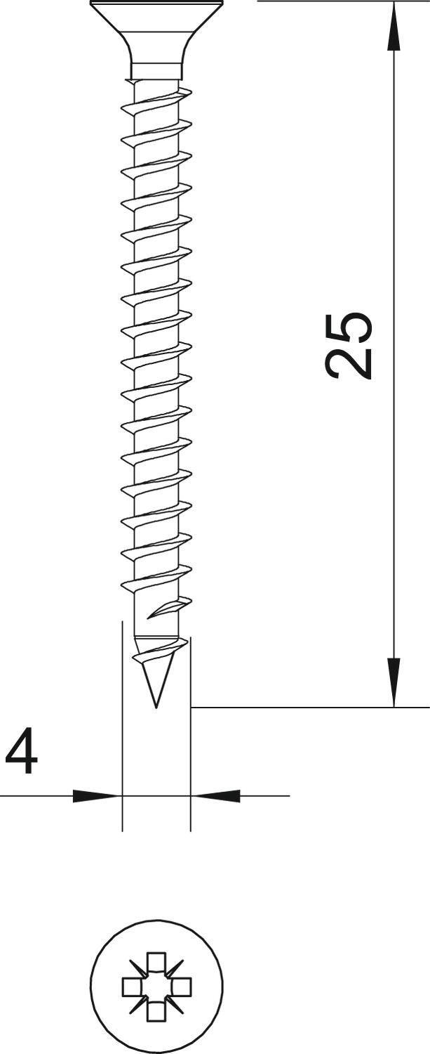 Stahl gehärtet, galvanisch verzinkt und hostaflonbeschichtet. Senkkopf mit Kreuzschlitz (Pozidrive Gr. 2 außer Ø 6 mm Pozidrive Gr. 3). Die Verwendung der SPRINT-Schrauben führt zu erheblich verkürzten Einschraubzeiten gegenüber herkömmlichen Schrauben. Bewirkt wird dieser spürbare Vorteil durch die Greifspitze mit dem 1. Gang, der auf das 2gängige Gewinde führt. Einsatzgebiete: Holz, Spanplatten, Rigips-Platten, Kunststoffdübel.