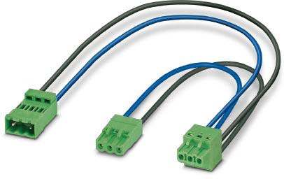 Konfektionierte Leiterplatten-Steckverbinder / Y-Leitung mit 3 Leiterplattensteckern, Bemessungsstrom: 9 A, Kopf 1: 3-polig , Rastermaß: 5,08 mm , Crimpanschluss , Stift, Leitung 1: Kabellänge: 0,33 m, Farbe: schwarz, blau, Kabeltyp:mPPE-Litze, Kopf 2: 3-polig, Rastermaß: 5 mm , Push-in-Federanschluss , Buchse, Leitung 2: Kabellänge: 0,2 m, Farbe: schwarz, blau, Kabeltyp:mPPE-Litze, Produktmerkmal: Leiterplattensteckverbinder für Smart Meter Gateways (SMGW), mPPE-Litze, Kopf 3: 3-polig, Rastermaß: 5,08 mm