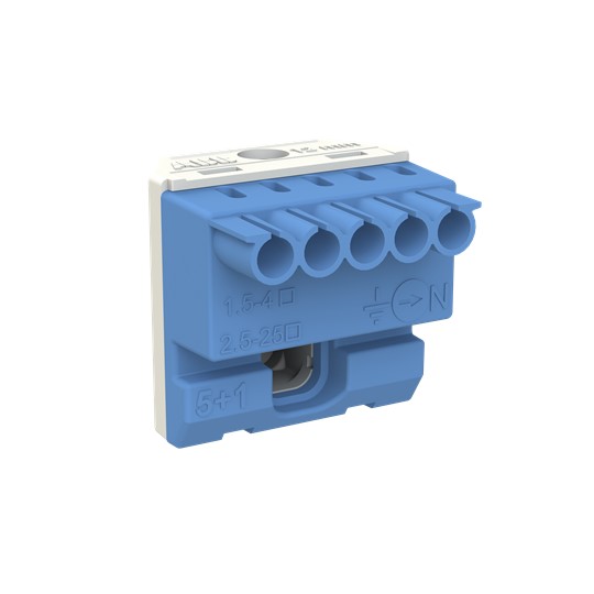 N Quick-Steckklemme für Quick-Steckträger, werkzeuglose Montage durch einfache Steck- und Rasttechnik, klare Farbcodierung: N = blau, flexibles Klemmensystem für mehrere N-Stromkreise, Anzahl der Klemmen: 5 x 1,5 - 4 mm² (Federklemmtechnik) + 1 x 2,5 bis 25 mm² (Schraubanschlusstechnik), Außenmaße H x B x T in mm: 32 x 32 x 31, einfaches Beschriften der Klemmenstellen (DIN VDE 0603 Teil 1) mit vorgedruckten, selbstklebenden Zahlenstreifen.