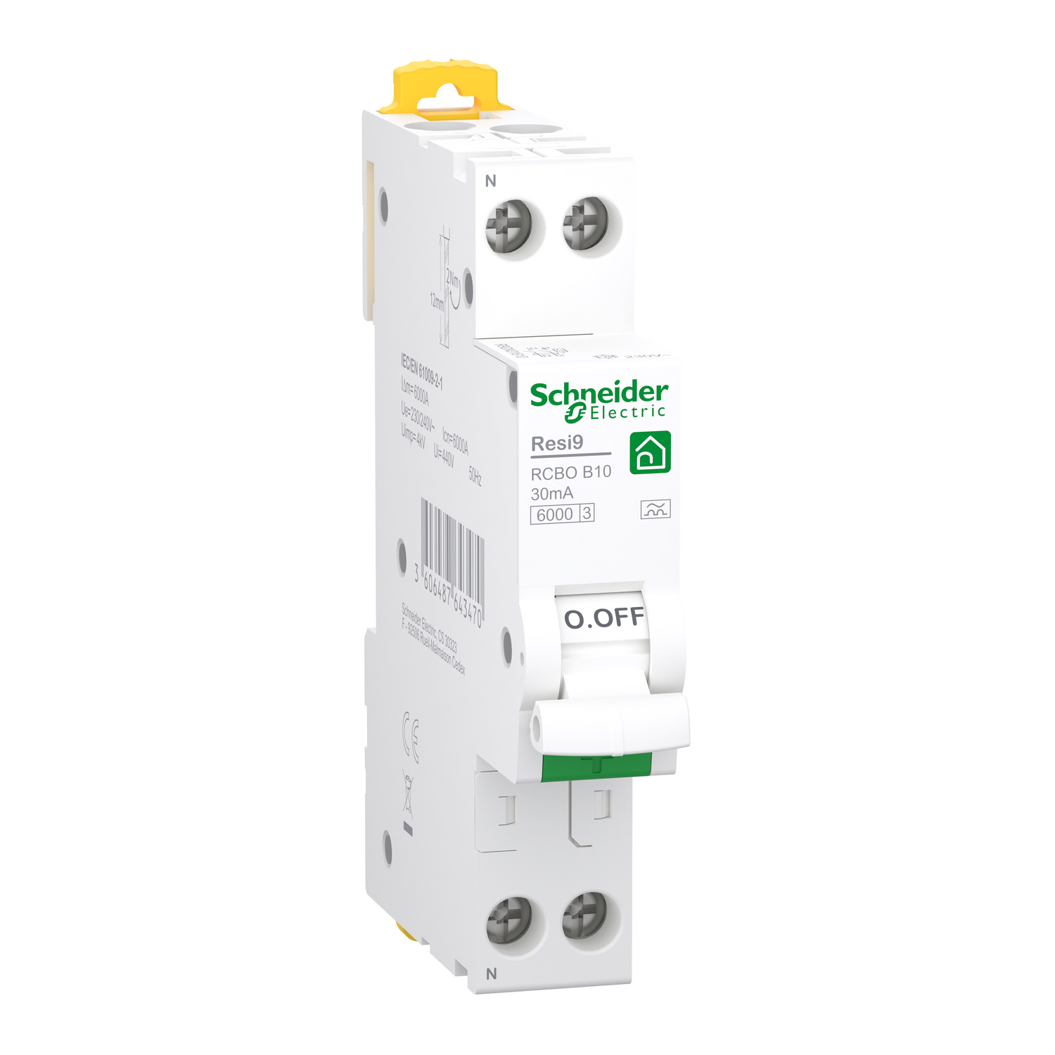Optimaler Fehlerstromschutz für Personen und Anlagen mit unserem neuen kompakten Resi9 Typ A FI-LS 1P+N 10A von Schneider Electric. Eingesetzt wird dieser kompakte FILS 1TE (18mm) bei einer Netzfrequenz von 50Hz und einer Betriebsspannung von 230V AC. B, mit einem Kurzschlussvermögen von 6kA bei 230V AC nach EN/IEC 61009-2-1 Standard. Nennfehlerstrom 30 mA, Typ A, Löst bei AC-Fehlerströmen aus und geht nicht in die Sättigung bis 6mA DC-Fehlerströme. Einsetzbar bei einer Betriebstemperatur von -25°C bis 60°C. Mechanische rote Anzeige bei Fehlerauslösung des LS-Schalters und seperaten mechanische rote Anzeige bei Fehlerstromauslösung des FI-Schutzschalters an der Frontseite des Gerätes. Die Prüftaste ist mit einem T markiert. Beim drücken dieser Taste kann die Funktionalität des Schutzgerätes getestet werden. Die Resi9 FILS Serie bietet den bestmöglichen Schutz im Wohnbau.- Hersteller-Artikelnummer (MPN)