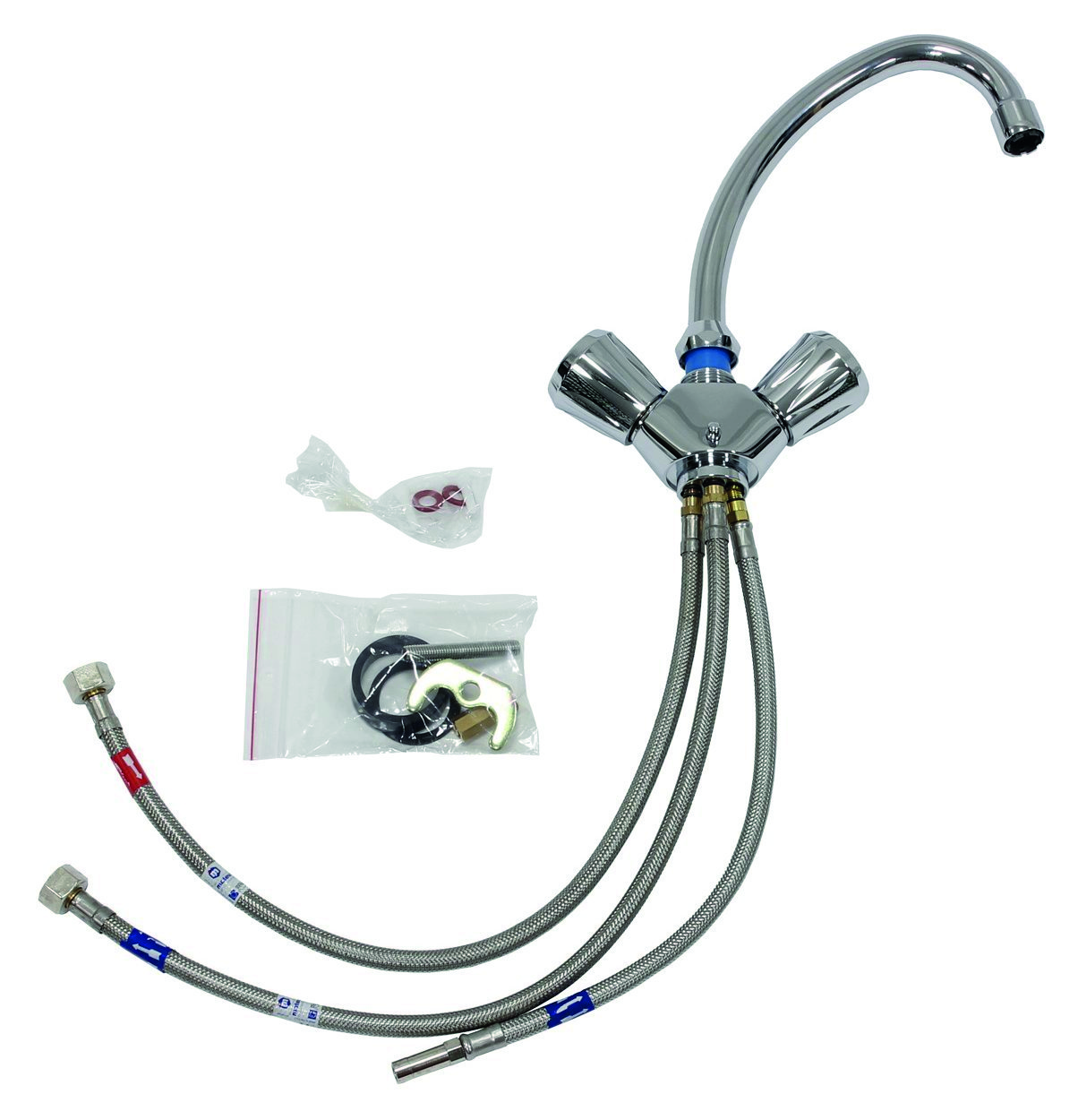 VNU 2 Standard für Waschtisch und Spüle Niederdruckarmatur, Untertischanschluss, Zweigriff, 150 mm Auslaufhöhe, 150 mm Ausladung, 2 Speicher-Anschlussschläuche 500 mm, 1 Kaltwasseranschlussschlauch 350 mm, flexible Anschlussschläuche- Hersteller-Artikelnummer (MPN)