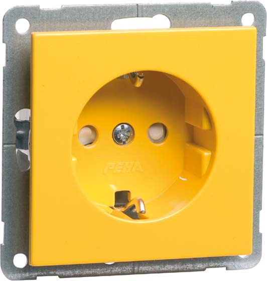 Steckdose SCHUKO mit Steckklemmen ohne Spreizen nur für Schraubbefestigung 2-polig, 16 A 250 V, mit Verbindungsklemmen nach VDE 0620, mit Zentralplatte für Kombinationen, erhöhter Berührungsschutz gemäß VDE 0620
