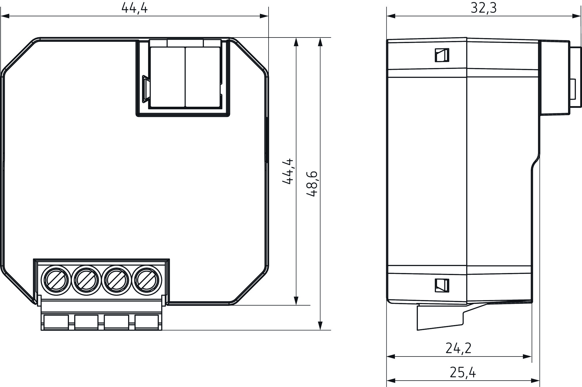KNX 1-fach Jalousie-/Schaltaktor UP zum Steuern von Antrieben für Jalousien, Rollladen, Sonnen- und Sichtschutzeinrichtungen, Dachluken und Lüftungsklappen, C-Last, Integrierte Lüftungsautomatik, Flexible Funktionsauswahl als Jalousieaktor oder 2-Kanal Schaltaktor, 2 Binäreingänge für potentialfreie Kontakte wie Taster, Schalter, Fensterkontakt, Temperatursensor (I2), Die Binäreingänge sind ab Werk dem Ausgang zugewiesen (Funktionstest vor der Programmierung), Integrierte Temperaturüberwachung für erhöhte Betriebssicherheit z.B. bei Überlast