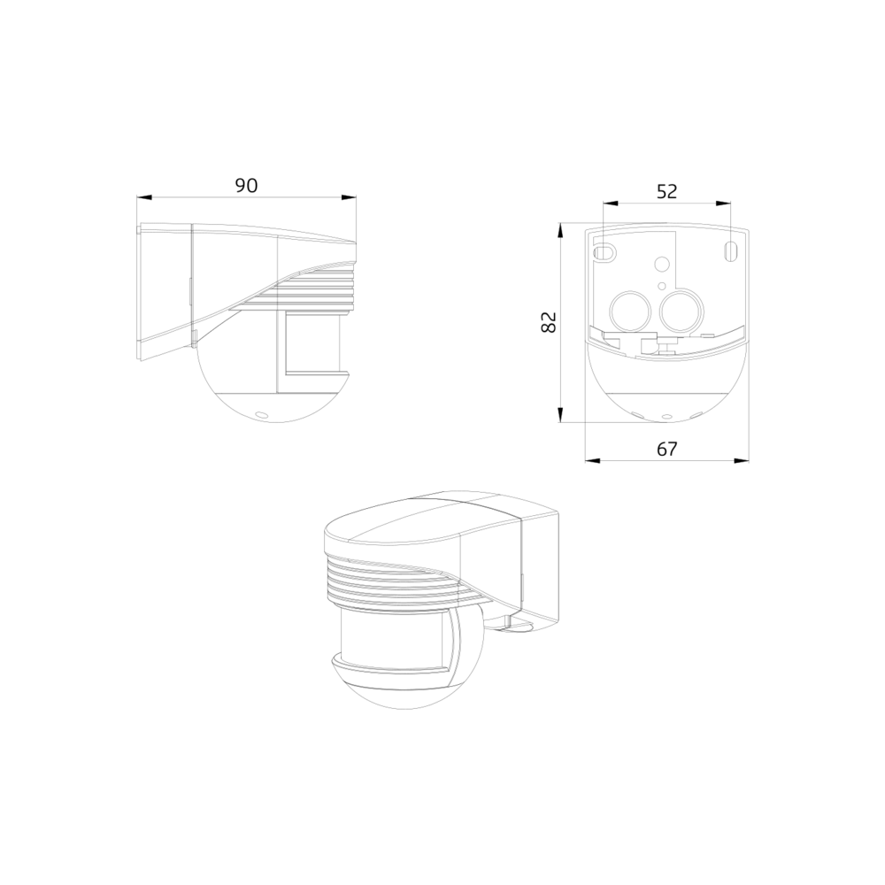 Bewegungsmelder mit 200 Grad Erfassungsbereich, Beweglicher Kugelkopf, Einfache Montage durch Stecksockel, Erfassungsbereich kann durch Abdecklamellen eingeschränkt werden