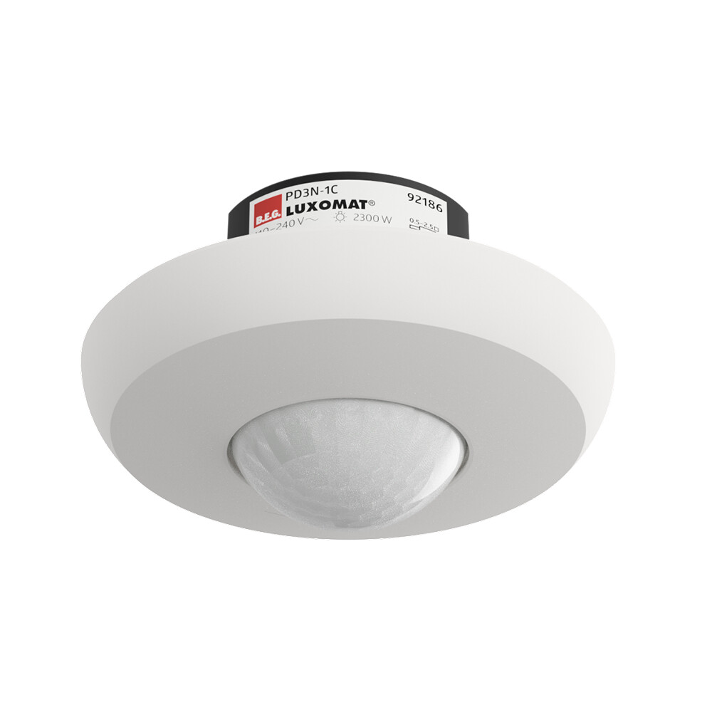 Fernbedienbarer Decken-Bewegungsmelder, Ein Kanal zum Schalten von Licht, Schaltung im Nulldurchgang, Spezielles optisches System für die Erfassung selbst kleinster Bewegungen, Unterbrechungsfreie Parallelschaltungserkennung von mehreren Meldern., Manuelles Schalten über Taster möglich, Weitere Funktionen über optionale Fernbedienung einstellbar, Werkseinstellung 10 min und 500 Lux