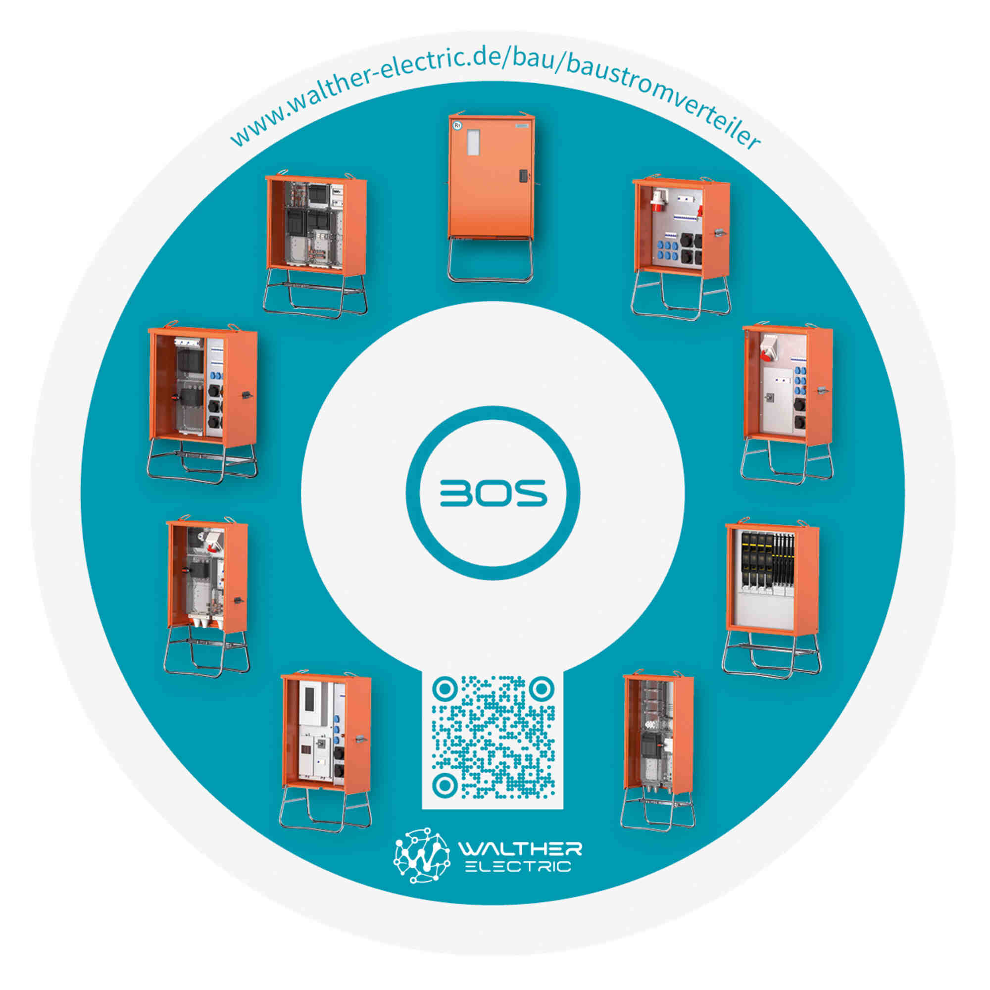 WALTHER VerteilerschrankAnschlussleistung: 22kVAnach IEC61439-4Gehäuse (H06) aus elektrolytisch-verzinktem Stahlblech mit schwermetallfreier Kunststoff-Lackierung Farbe: RAL 2004 -reinorange- mit Einfachtür, Federfallriegel für Vorhängeschloss und Griffmulde mit Kranösen und seitlichen Tragegriffen inkl. feuerverzinktem Untergestell mit Ösen für Erdnägel Einbauten bis einschließlich RCD-Schutzschalter im IsolierstoffgehäuseSchutzart: IP 44Größe ca.: 739 x 669 x 360mm / H-B-T + Untergestell-Höhe ca.: 323mmAnschluss:1 Leistungsschalter 3P 32A mit thermisch-magnetischem Auslöser mit Rahmenklemmen 10-50 mm²Abgang / Absicherung:1 RCD-Schutzschalter 4P 40A/30mA -B-1 CEE-Anbaudose 32A 5P 400V 6h ohne Vorsicherung -direkt ab RCD-2 CEE-Anbaudosen 16A 5P 400V 6h mit je 1 Leitungsschutzschalter (MCB) 3P 16A -C-3 Schutzkontaktsteckdosen 16A 2P 230V mit je 1 Leitungsschutzschalter (MCB) 1P 16A -C-