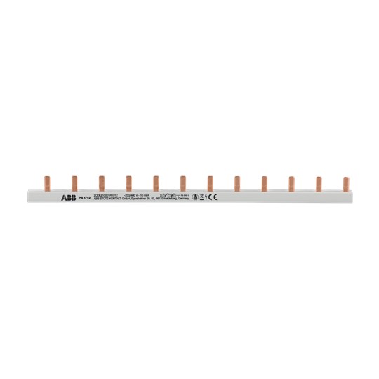 ABB Phasenschienen ermöglichen die sichere und wirtschaftliche Querverdrahtung von Sicherungsautomaten, Fehlerstrom-Schutzeinrichtungen (FI) und weiteren Installationsgeräten. Die Phasenschiene PS1/12 kommt mit einer Phase mit 10 mm². Die Phasenschiene kann für eine Querverdrahtung von insgesamt 12TE genutzt werden. Bitte beachten Sie, dass diese Phasenschiene nicht zum Ablängen geeignet ist.