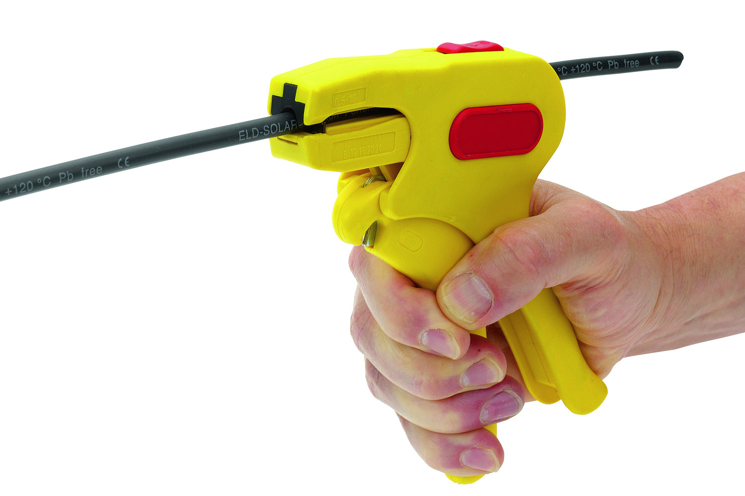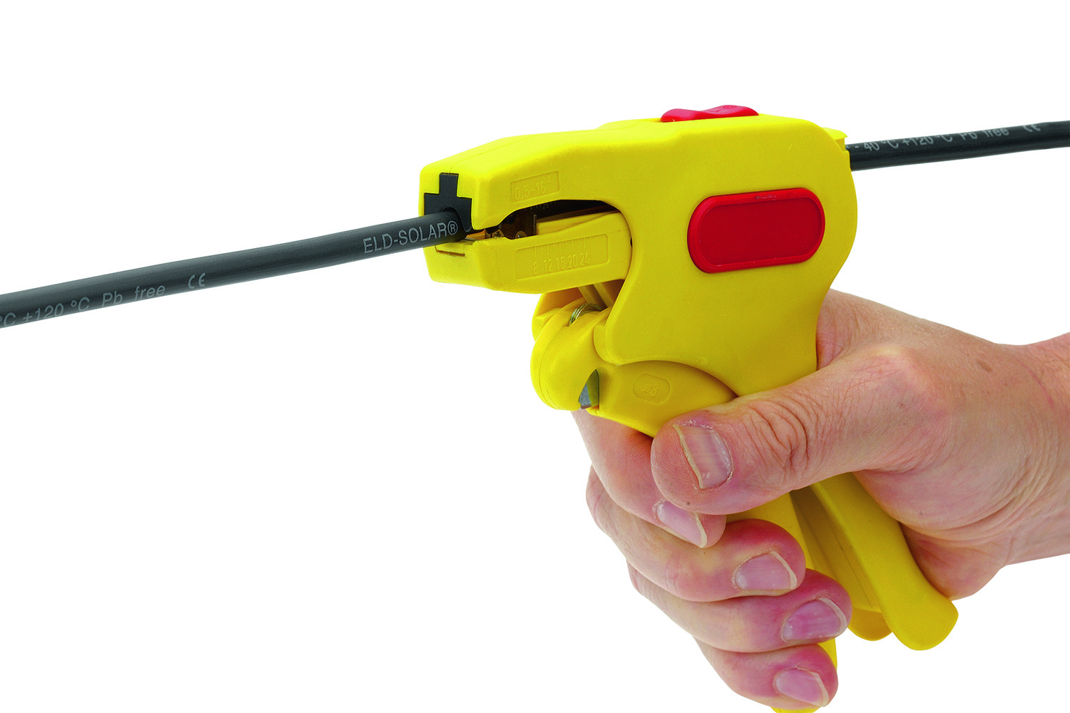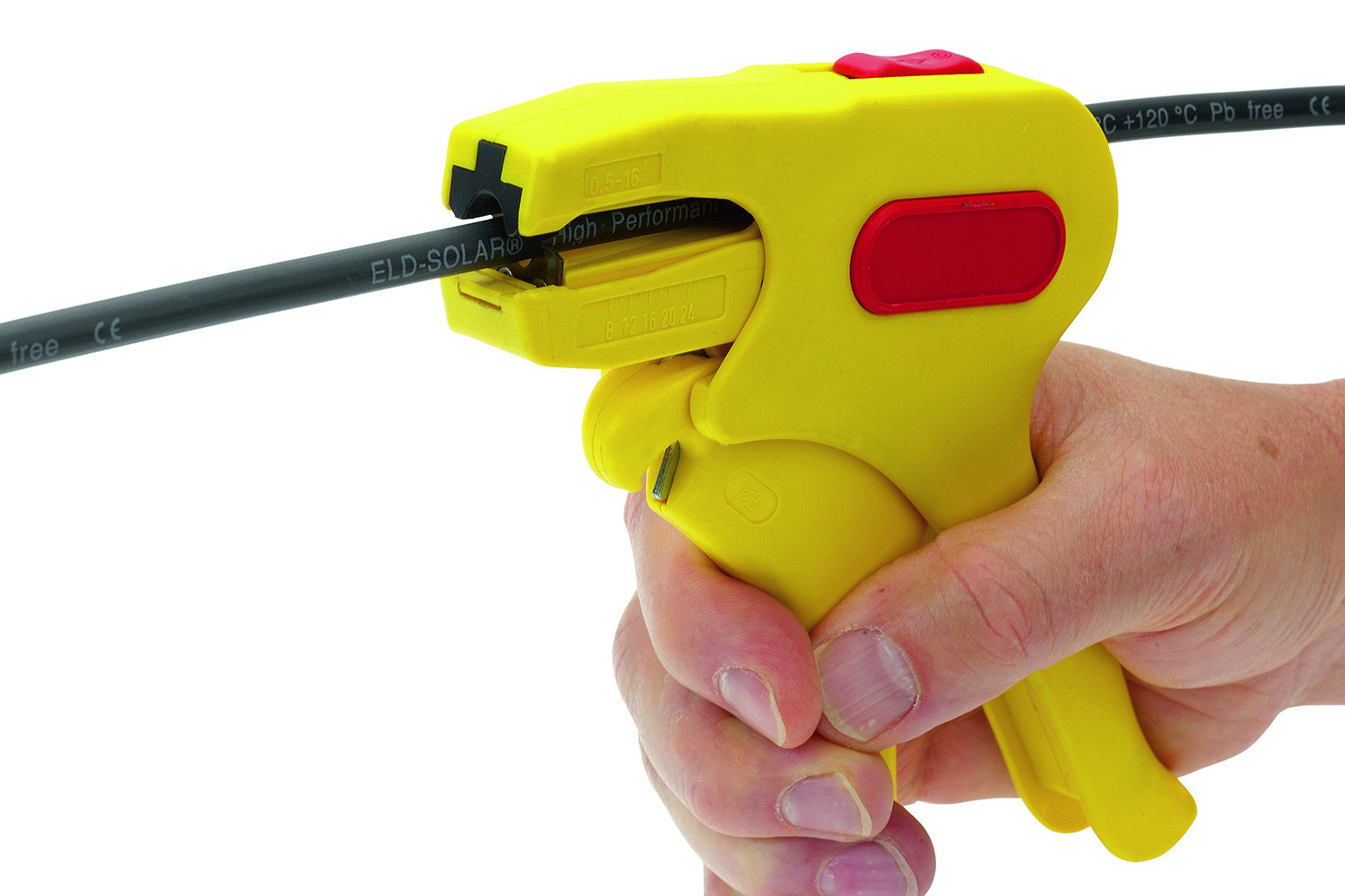 Automatische Abisolierzange für alle gängigen Solarkabel von 1,5 mm² bis 10 mm², die in dem Bereich Photovoltaik eingesetzt werden. Durch die präzise 5-fach verstellbare Feineinstellung ist auch das Entfernen von mehrlagigen Isolierungen bei Solarkabeln ohne Probleme möglich. Optisches Längenmaß von 8 bis 24 mm, 5/16 bis 1 für stets gleiche Abisolierlängen. Mit integriertem, gut zugänglichem Seitenschneider für Kabel bis maximal 3 mm Ø. Ergonomischer Pistolengriff für ermüdungsfreies Arbeiten. Gewicht nur 240 g.
