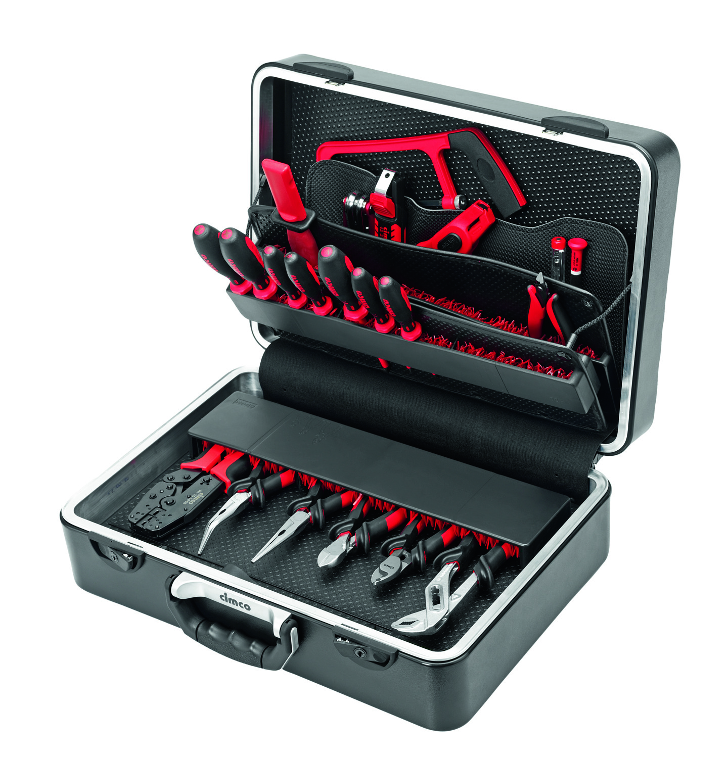 Werkzeugkoffer Perfekt "Elektro". Formschöner, stabiler und robuster Hartschalenkoffer mit 3 Werkzeugtafeln = 4 Einsteckleisten und einem Dokumentenfach. Bodenschale mit Rasteraufteilung und Trennstegen zur sicheren Unterbringung von Messgeräten und Kleinteilen, der CLOU, die neuen Werkzeugtafeln mit dem sensationellen Klemmeffekt, kleine und große Werkzeuge können ohne zwingendes Ordnungsprinzip eingesteckt werden und halten sicher fest, auch beim Transport, sogar wenn der Koffer mal auf dem Kopf steht. Komplett mit 21 Werkzeugen. Werkzeugkoffer-Bestückung je 1x: Telefonzange mit 1.000 V-Schutzisolation, geraden Backen 200 mm, DIN ISO 5745 (10 0216), Telefonzange mit 1.000 V-Schutzisolation, gebogenen Backen,200 mm, DIN ISO 5745 (10 0238), Seitenschneider 160 mm mit 1.000 V-Schutzisolation, 160 mm, DIN ISO 5749B (10 0574), JOKARI Abisolierzange Super 4 (10 0760),Elektronik-Seitenschneider bis 1,3 mm ø, 21°, 132 mm (10 1040), Wasserpumpenzange DIN ISO 8976 mit Griffhüllen 250 mm (10 1224)Presszangensystem click `n` crimp, Elektrotechnik (10 6000), Kugelkopf-Sechskant-Stiftschlüssel-Satz 7-teilig, SW 2,5-10, Handklapphalter (11 0596),Phasenprüfer 120 250 V AC, 3,0/65 mm (11 1280)Präzisions-Schlitz-Schraubendreher, Farbcode weiß, 2,0x0,4x60 mm (11 1864), 1.000 V Schlitz-Schraubendreher 185 mm, DIN EN 60900, 3,0x0,5 mm (11 7702)1.000 V Schlitz-Schraubendreher 185 mm, DIN EN 60900, 4,0x 0,8 mm (11 7704), 1.000 V Schlitz-Schraubendreher 220 mm, DIN EN 60900, 5,5 x 1,0 mm (11 7705), 1.000 V Kreuzschlitz-Schraubendreher PH 1, 80 mm, DIN 7438, (11 7731), 1.000 V Kreuzschlitz-Schraubendreher PH 2, 100 mm, DIN 7438 (1 7732), 1.000 V Kreuzschlitz-Schraubendreher PZ 1, 80 mm (11 7741), 1.000 V Kreuzschlitz-Schraubendreher PZ 2, 100 mm (11 7742), Kabelschere DUOCUT, 160 mm mit zweistufigem Schneidenbereich (12 0108)Taschensäge PROFI, Spannweite 150 mm (12 0490), 1.000 V Sicherheits-Kabelmesser, gerade starke Klinge, 50 mm (12 1042),JOKARI Kabelmesser, 8 28 mm ø (12 2016) Gewicht: 7.765g, Außenmaß B/T/H: 485/355/180 mm, Innenmaß B/T/H1/H2/H#: 455/305/100/65/165 mm.