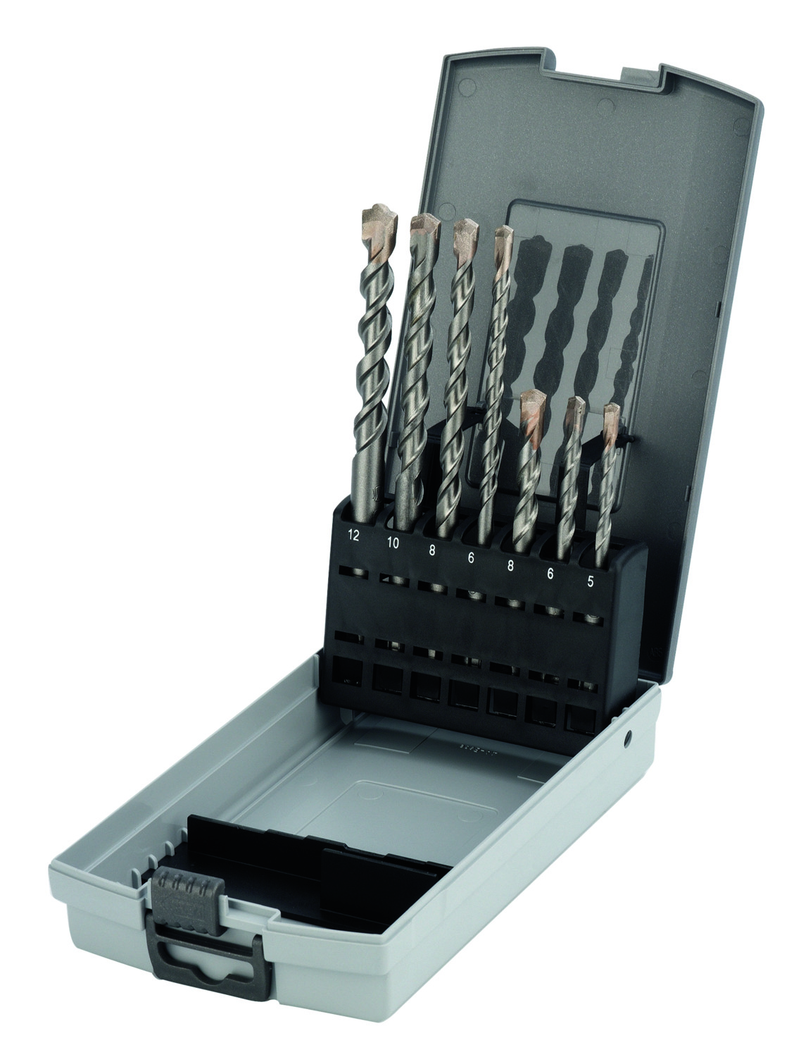 SDS-Plus-Hammerbohrer-Sortiment, 7-teilig bestückt mit Bohrern aus unserer Serie 20 8300 ff.,in stabiler Kunststoffkassette. Ausführung: Bohrer-Øx Länge 5x110/6x110/6x160/8x 110/8x160/10x160/12x160