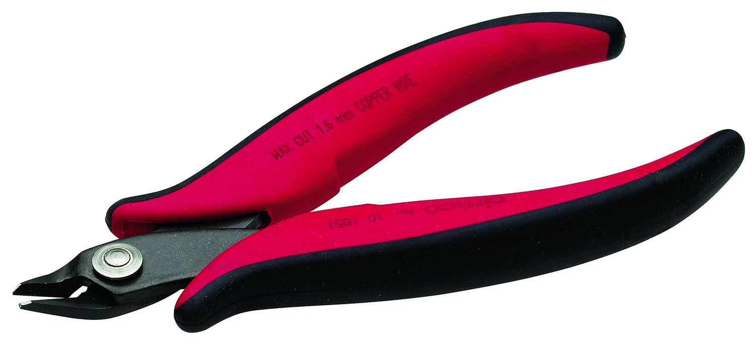 Elektronik-Seitenschneider mit verstärkter Schneide, ohne Schneidwate, Anstellwinkel 21 Grad, Länge 132 mm, für weiche Drähte bis 1,0 mm Durchmesser Präzisions-Elektronikzangen mit durchgestecktem Gelenk, gesenkgeschmiedete Ausführung hochpräzise Ausführung aus Spezialstahl, leicht selbstöffnend durch Doppelblattfedern, hohe Standzeit, Flächen fein geschliffen, mit ergonomischen Zwei-Komponenten Griffhüllen (in ESD oder 1.000 V Ausführung auf Anfrage)