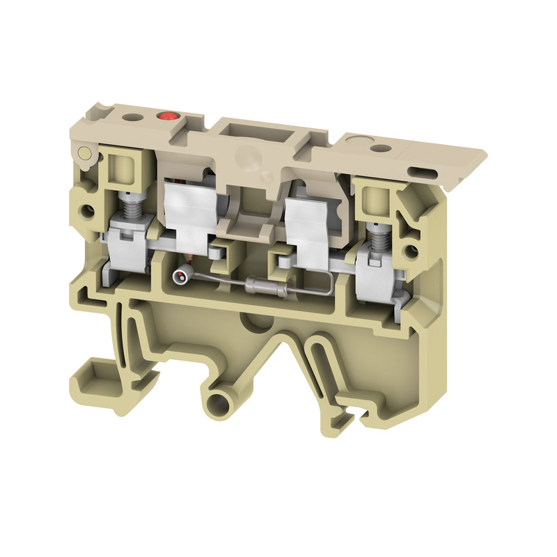 Reihenklemme zum Anschließen oder Verbinden von Leitern mit dauerhaft sicherem Kontakt. Gehärteter Stahl hält den mechanischen Kräften stand, Zinn-beschichtetes Kupfer sorgt für beste Leitfähigkeit. Mit herausnehmbarem Träger für einen Sicherungseinsatz.