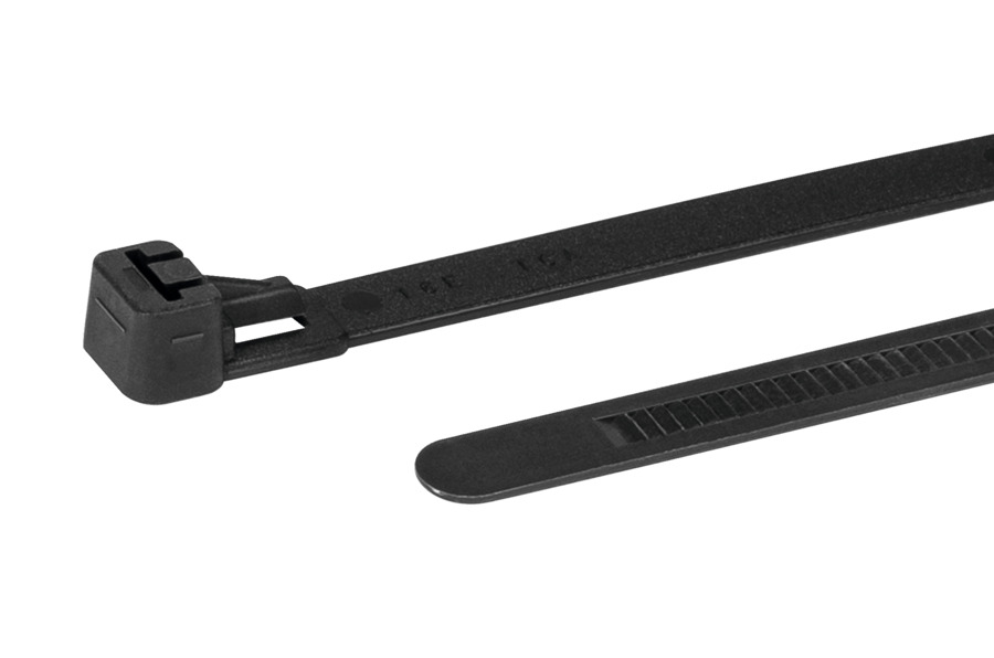 Lösbarer und wiederverwendbarer Kabelbinder. Durch den Hebelverschluss sehr einfach zu lösen. Kann mit nur einer Hand geöffnet werden. Die REL Kabelbinder sind innenverzahnt. Für Außenanwendungen auch in PA66W erhältlich. Die REL-Serie ist ideal geeignet wenn Kabel oder Leitungen in Etappen zusammengeführt werden müssen und häufiges Lösen oder Schließen der Kabelbinder bei einzelnen Fertigungsstationen erforderlich ist. Der Hebelverschluss des REL Kabelbinders ermöglicht das einfache und schnelle Lösen mit nur einer Hand. UV witterungsstabile Kabelbinder aus PA66W sind besonders für Außenanwendungen geeignet.