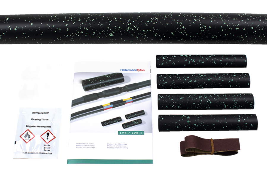 Dickwandig: sehr guter Abrieb-, Knick- und Schnittschutz. 4:1 deckt großen Anwendungsbereich ab, hoher Anpressdruck. Thermoplastischer Innenkleber zum Schutz gegen äußere Einflüsse und zur Zugentlastung. Thermochromatische Punkte (grüne Punkte) als Schrumpfindikator. Beständig gegen Chemikalien und Erdalkalien. Hohe Witterungsbeständigkeit. halogenfrei. Verpackung im Set für eine einfache Handhabung. Die LVK Warmschrumpf-Verbindungsgarnitur dient zum universellen Verbinden von unarmierten Kunststoffkabeln und Leitungen aus PVC, PE und VPE ( N(A)YY, NYM, TT). Sie ist zur Verwendung mit Press- und Schraubverbindern auf Aluminium- und Kupferkabeln geeignet, Nennspannung 0,6/1,0 (1,2) kV.