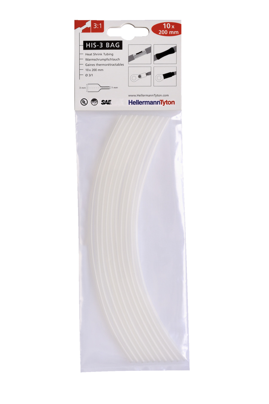 Schrumpfschlauch 10Abschnitte a 200mm HIS-3-BAG-3/1 tr.