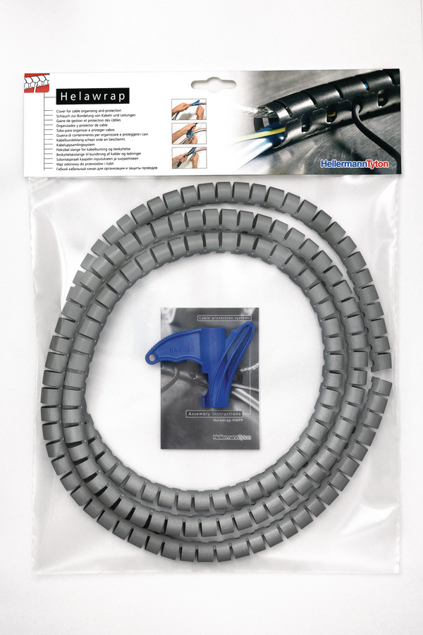 Die ideale Lösung zum Bündeln, Schützen und Befestigen von Kabeln. Leicht und mühelos anzuwenden. Guter Abriebschutz. Ausführen von Kabeln über die gesamte Länge möglich. Kann wiederverwendet werden. Erhältlich in unterschiedlichen Farben und Größen. Inklusive HAT Aufziehwerkzeug. Die Haupteinsatzbereiche von Helawrap HWPP liegen in der Bündelung und dem Schutz von Leitungen in der Kabelkonfektion, der Elektroindustrie sowie im Schaltschrank- und Anlagenbau. Helawrap Kabelbündelschläuche in den Längen von 15 m und 25 m sind die zeitsparende Lösung für viele industrielle Anwendungen.