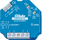 1+1 Schließer potenzialfrei 10A/250V AC, 230V-LED-Lampen bis 200W, Glühlampen 2000W. Kein Stand-by-Verlust. Für Einbaumontage. 45mm lang, 45mm breit, 32mm tief. Modernste Hybrid-Technik vereint die Vorteile verschleißfreier elektronischer Ansteuerung mit der hohen Leistung von Spezialrelais. Universal-Steuerspannung 12..230V UC. Keine ständige Stromversorgung erforderlich, daher auch kein Stand-by-Verlust. Durch die Verwendung eines bistabilen Relais gibt es auch im eingeschalteten Zustand keine Spulen-Verlustleistung und keine Erwärmung hierdurch. Nach der Installation die automatische kurze Synchronisation abwarten, bevor der geschaltete Verbraucher an das Netz gelegt wird. Mit dem ES/ER-Drehschalter werden die Funktionen des zweiten Drehschalters vorgewählt. Mit ER werden die Klammerfunktionen gewählt. Es kann zwischen 10 Funktionen gewählt werden: 2S = Stromstoßschalter mit 2 Schließern. (2R) = Schaltrelais mit 2 Schließern. WS = Stromstoßschalter mit 1 Schließer und 1 Öffner. (WR) = Schaltrelais mit 1 Schließer und 1 Öffner. SS1= Serienschalter 1 + 1 Schließer mit Schaltfolge 0 - Kontakt 1(1-2) - Kontakt 2(3-4) - Kontakte 1 + 2. (RR) = Schaltrelais (Ruhestromrelais) mit 2 Öffnern. SS2 = Serienschalter 1 + 1 Schließer mit Schaltfolge 0 - Kontakt 1 - Kontakte 1 + 2 - Kontakt 2. (EW) = Einschalt-Wischrelais mit 1 Schließer und 1 Öffner, Wischzeit 1s. GS = Gruppenschalter 1 + 1 Schließer mit der Schaltfolge 0 - Kontakt 1 - 0 - Kontakt 2. (GR) = Gruppenrelais 1 + 1 Schließer (Relais mit wechselnd schließendem Kontakt). Dieses Relais ist nicht zur Rückmeldung mit der Schaltspannung eines Dimmschalters geeignet. Hierzu nur die Relais ESR12DDX-UC, ESR12NP-230V+UC oder ESR61NP-230V+UC verwenden. Die Elektronik hat keine eigene Stromversorgung und daher in beiden Kontaktstellungen keinen Stromverbrauch. Lediglich während des kurzen Steuerimpulses von nur 0,2 Sekunden fließt der Steuerstrom, welcher den Mikrocontroller aktiviert. Er liest den letzten Schaltzustand aus seinem nichtflüchtigen Speicher, schaltet das bistabile Relais dementsprechend in die entgegengesetzte Richtung und schreibt den neuen Schaltzustand in den Speicher zurück.