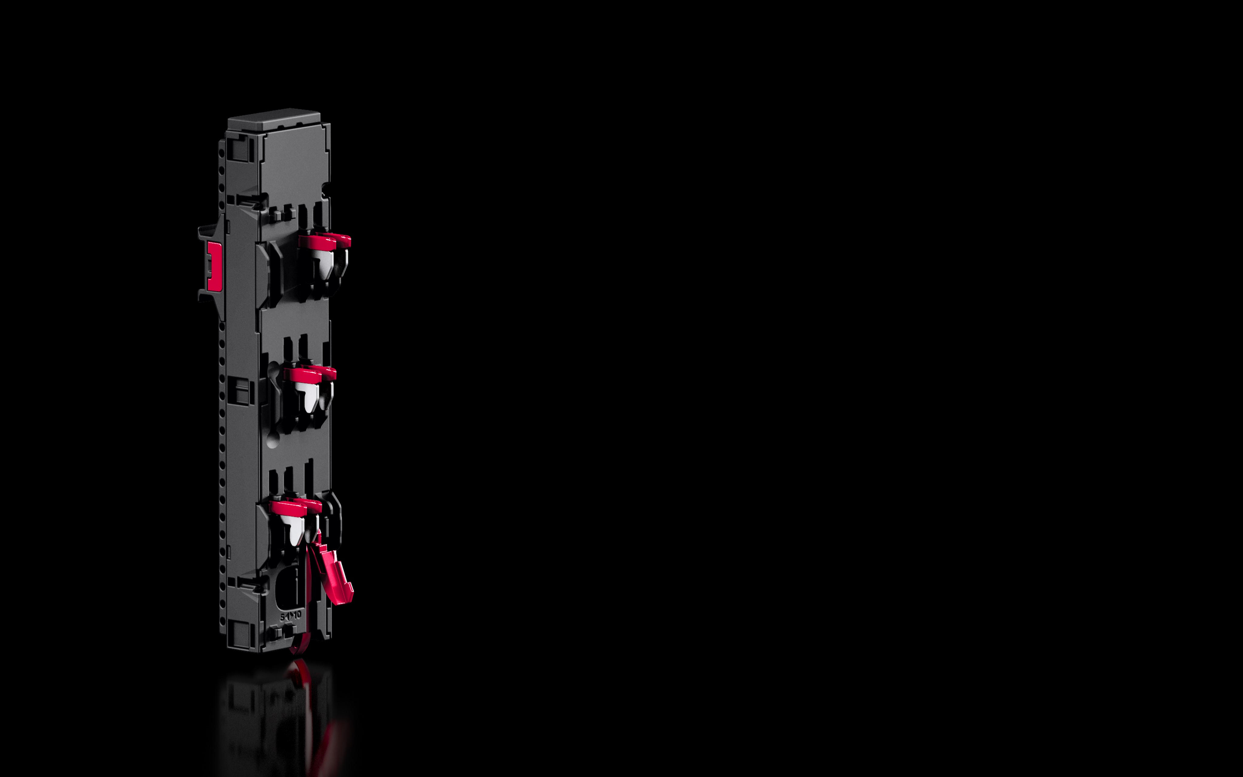 RiLineX Geräteträger in Breite 45 mm für RiLineX und 60 mm Sammelschienensystem-Plattformen, ohne Kontaktsystem. Ideal, falls breitere Geräte auf dem Board fixiert werden sollen