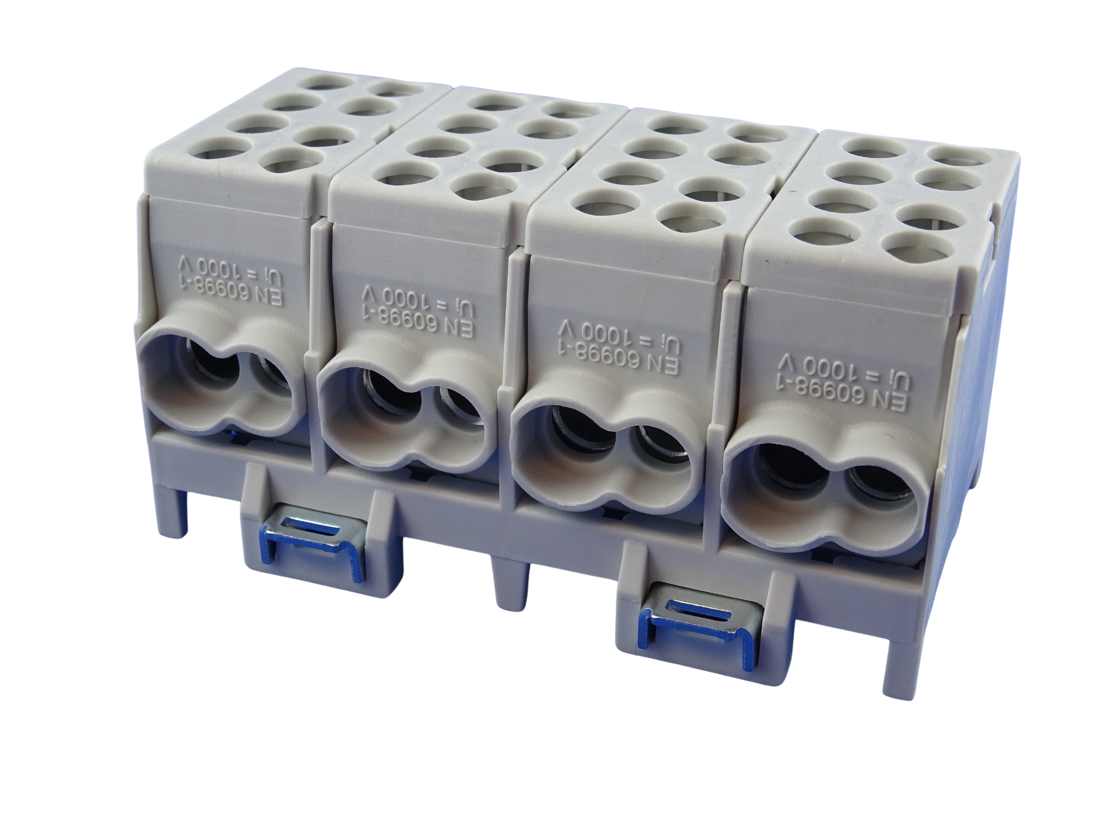 4 x grau, mehrpolig, Schnellbefestigung aus Stahlblech,Doppel-Schnellbefestigung bei 4- u. 5-pol., Minimodular kompatibel, VDE-zertifiziert