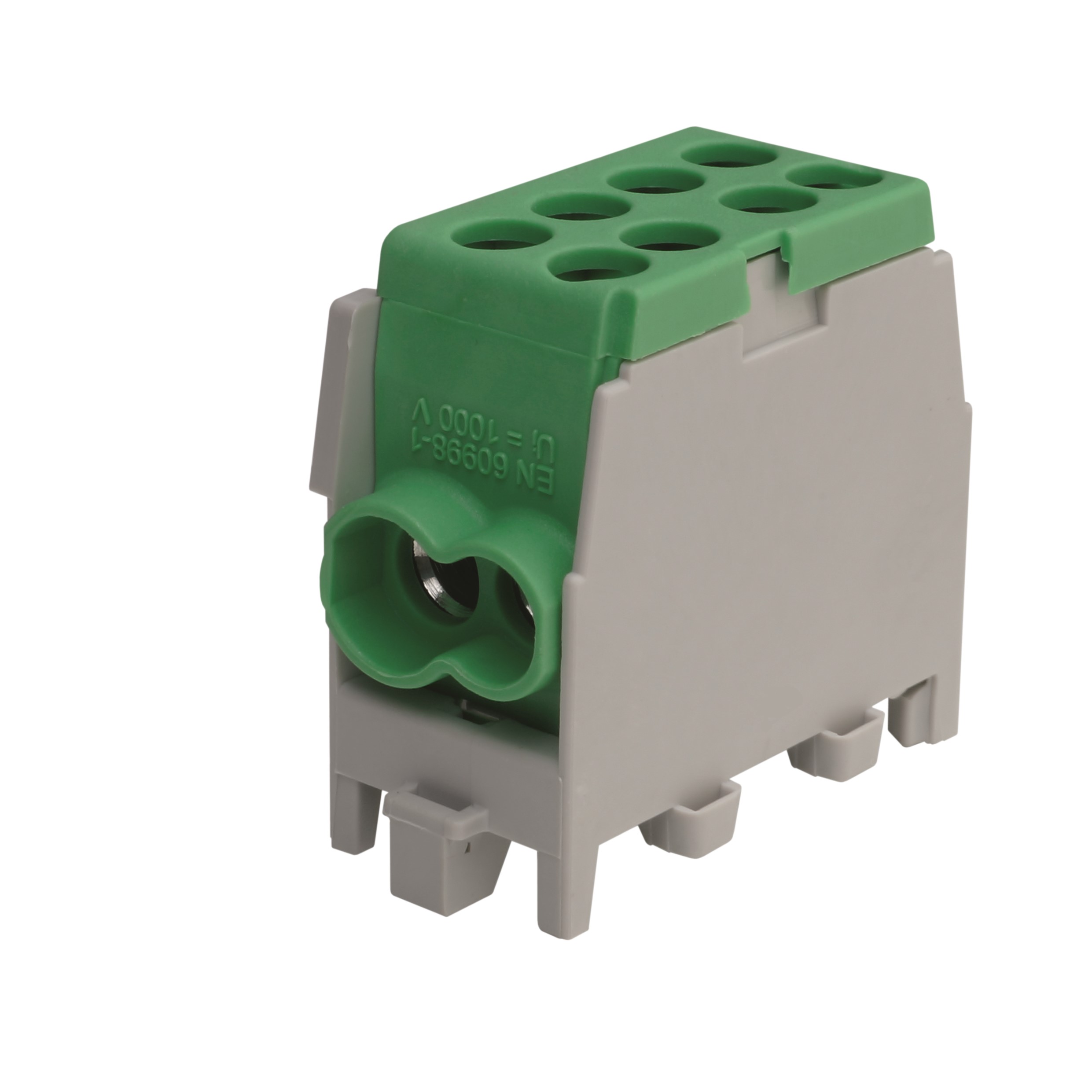 1 x grün, 1-polig, 2 Eingänge, 2 Ausgänge, zur Schnellmontage auf Hutschienen 35 mm, modulare Bauweise für 2-, 3- und mehrpolig, beliebig aneinander reihbar, Baureihe M2 minimodular: Die geringe Baugröße führt dazu, dass weniger Raum in der Verteilung benötigt wird. Es lassen sich jetzt 35/25 mm2-Abgänge realisieren, wo konventionell nur 25/16 mm2 möglich waren. Die minimodulare Anreihbarkeit führt zu einer bisher nicht gekannten Variabilität. Je nach Bedarf lassen sich die farbig gekennzeichneten Klemmen kombinieren und mit einem Werkzeug wieder lösen. PV-Eignung: Leitungseinführungen mit Isolierkragen ermöglichen den Einsatz der Klemme bis zu 1000 V Nennspannung gemäß VDE 0613 / EN 60998. Die Klemmen sind auch ohne angeschlossenen Leiter allseitig fingersicher. Für die Verwendung mit feindrähtigen Leitern ist die Klemmentiefe den üblichen Längen von Aderendhülsen angepasst (HLAK 35... - 25 mm, HLAK 25... - 16 mm). Die neuen Klemmen sind VDE-approbiert gemäß VDE 0603-2 für Zählerplätze und Verteilungen.