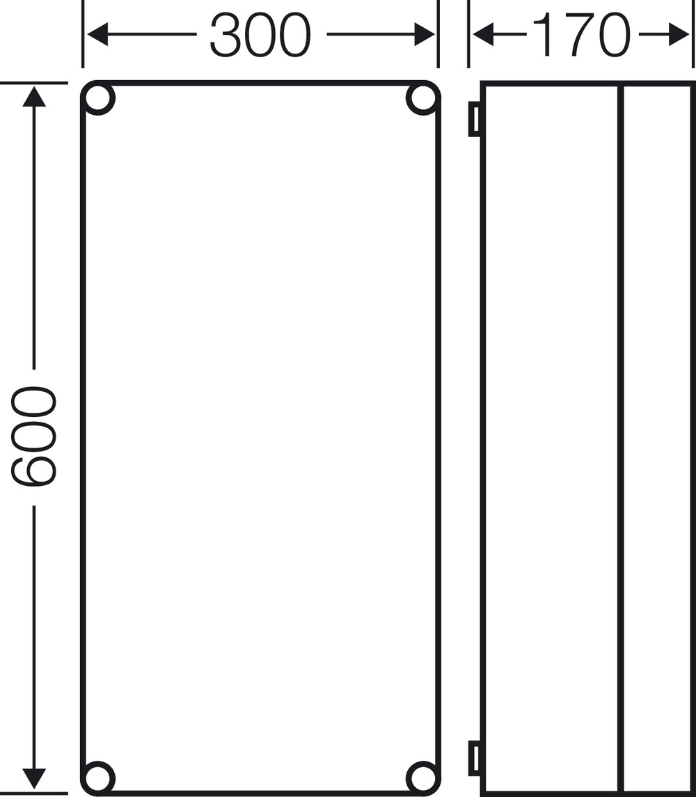 Gehäuse für den Bau von Energie-Schaltgerätekombinationen bis 630 A oder als Einzelgehäuse. Aus hochwertigem Polycarbonat schutzisoliert. Wanddurchführungen mit großen Öffnungen für die elektrische Verbindung der Gehäuse untereinander. Kabeleinführung an allen Gehäusewänden über metrische Vorprägungen oder Anbauflansche. Gehäuse zur Wandbefestigung auch über Außenlaschen oder mit Montageschienen. Leergehäuse mit transparentem Deckel. Einbaumaße B 275 x H 575 x T 150 mm für den Einbau von Geräten auf Montageplatte oder DIN-Tragschiene. Max. Einbautiefe bei eingebauter Montageplatte 146 mm, bei eingebauter Tragschiene 135 mm. Deckelverschlüsse mit Werkzeugbetätigung.
