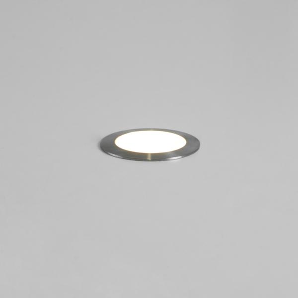 LED-Bodeneinbauleuchte, V4A, 24 V DC, IP65, edelstahl matt, rund. Einbaumontage, Bodenmontage Ausführung: ohne Fassung, Montageart: Einbaumontage, Montageort: Bodenmontage, Material: Edelstahl V4A / Aluminium / Glas, Schutzart raumseitig: nach DIN EN 60529: IP65, Schutzklasse: (EN 61140) III, Spannung: 24V, Leistung: 1,4 W, Anzahl der Leuchtmittel / Fassungen: 1 Stück, Lichtstrom: 18 lm, Farbtemperatur: 3.000 K, Lichtfarbe: weiß, Abstrahlwinkel: 100°, ohne Betriebsgerät, Art der Dimmung: Abhängig vom Betriebsgerät.